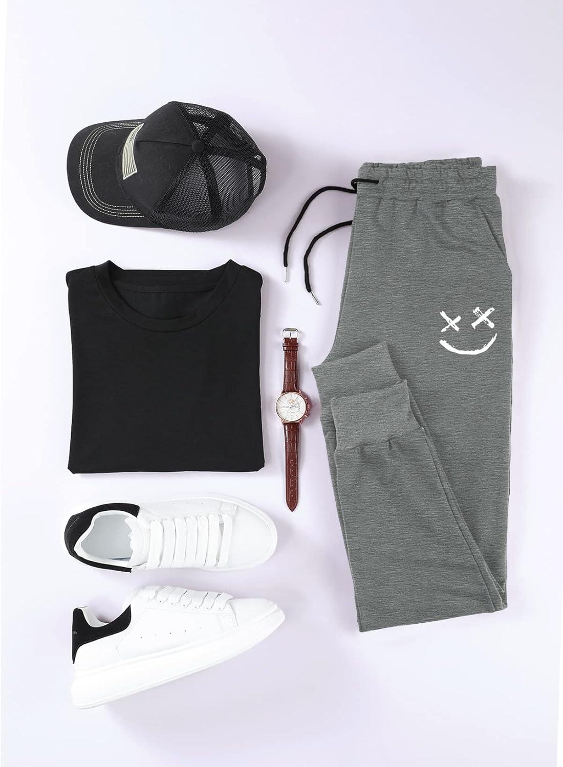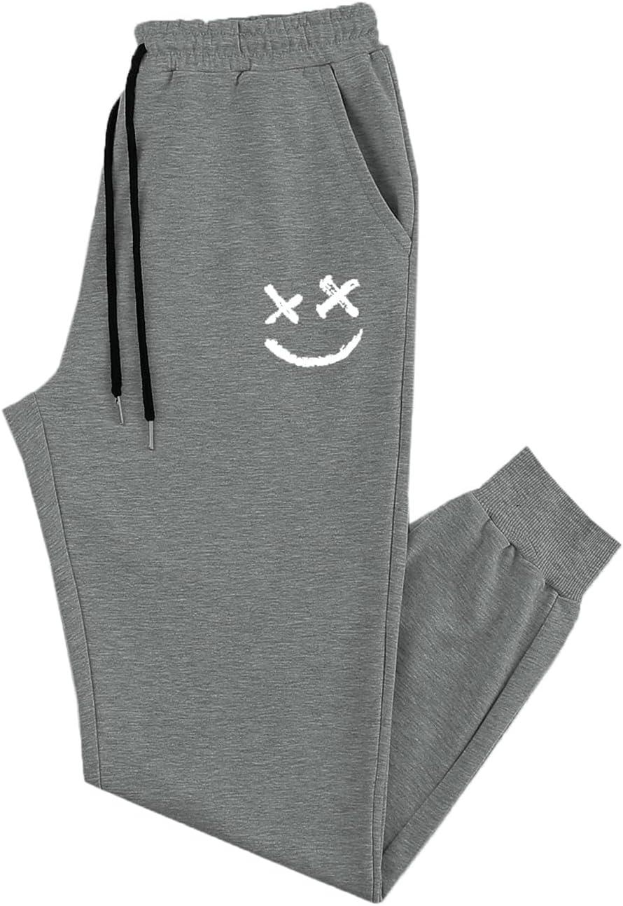 JMIERR Mens Sweatpants Tapered Gym Running Workout Pants Athletic Drawstring Joggers with Pockets(B2 Dark Grey Smiley Face)