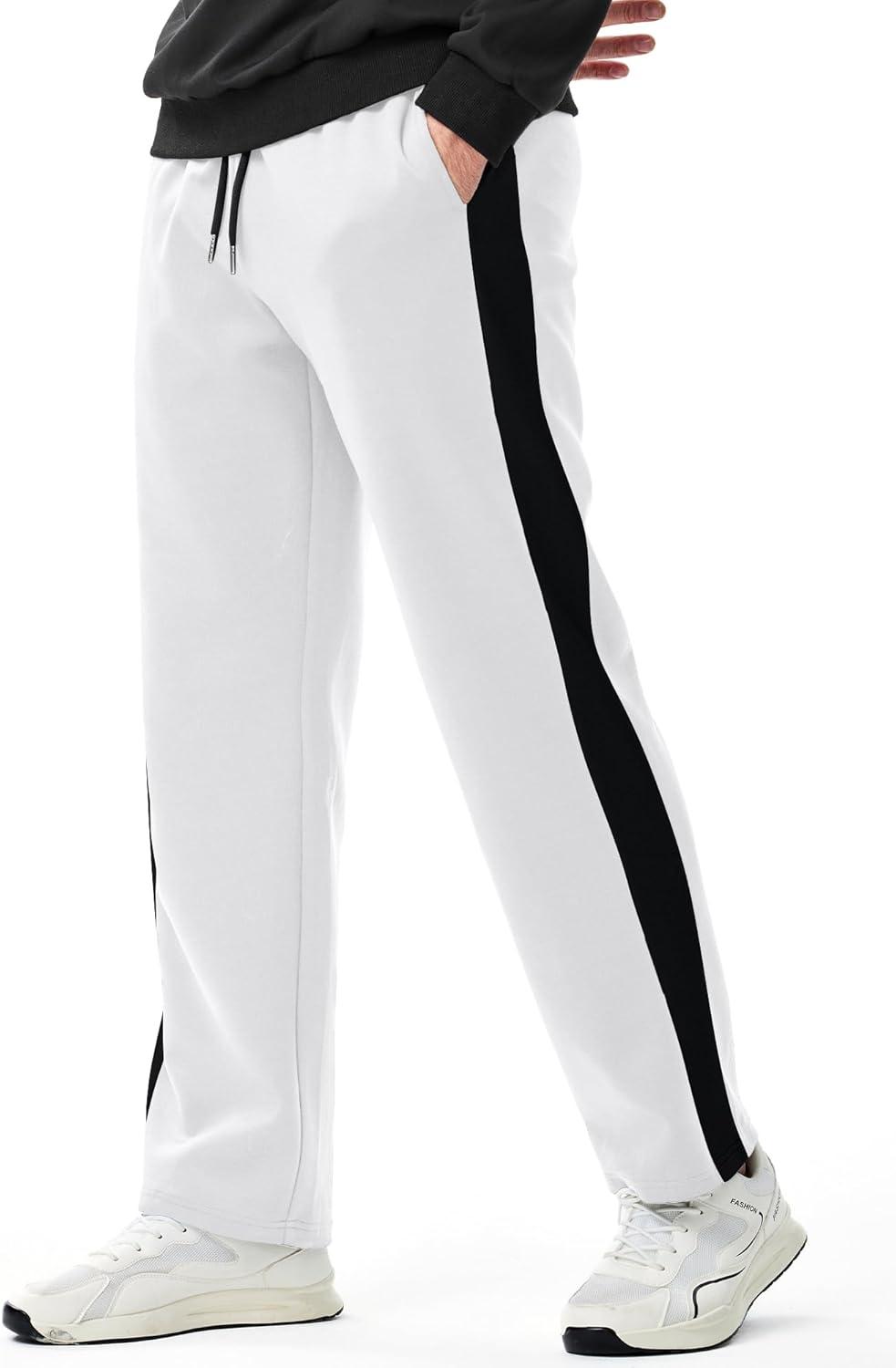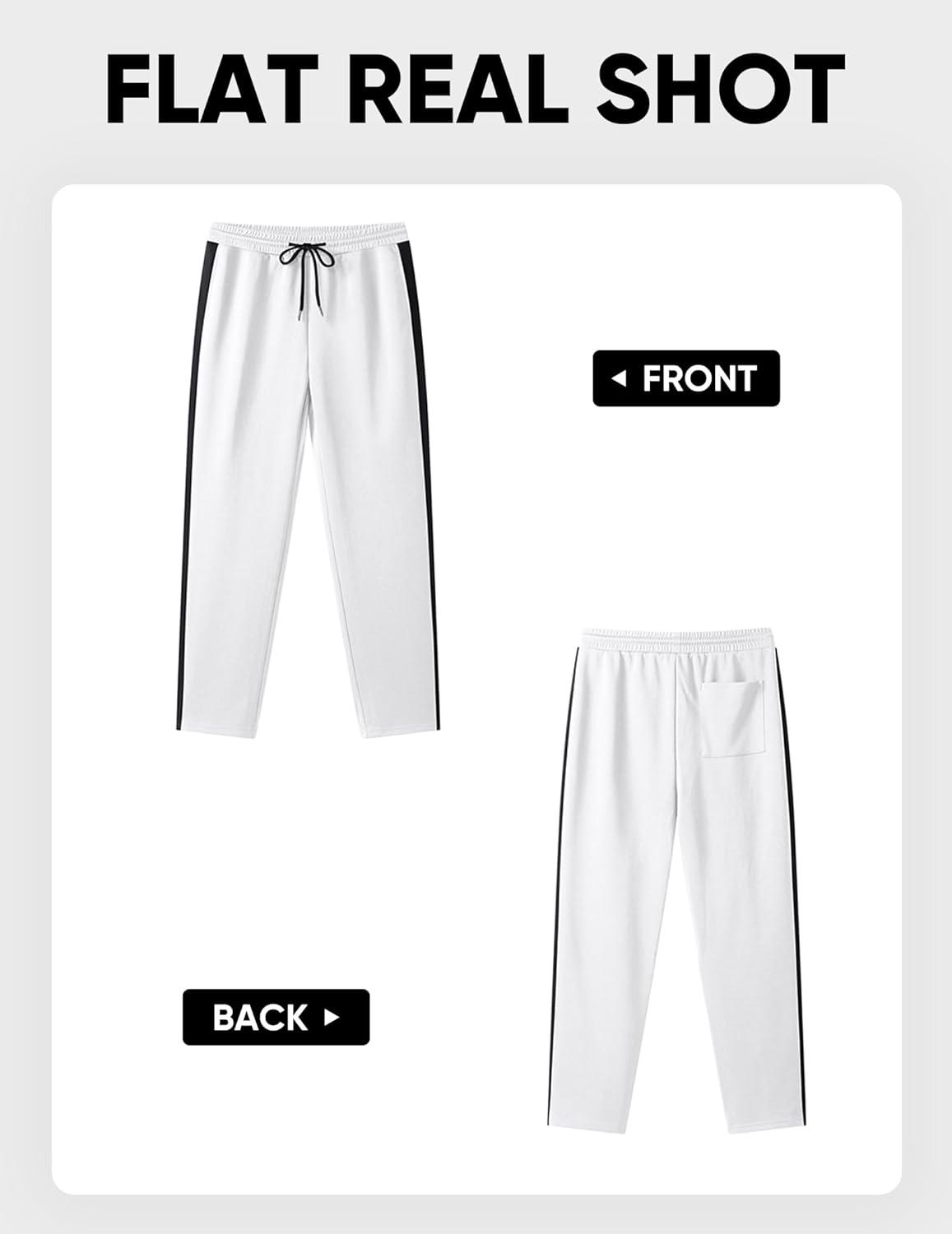 JMIERR Men’s Sweatpants Wide Leg Color Block Stripes Tapered Trousers Drawstring Waist Casual Stretch Track Pants(White)