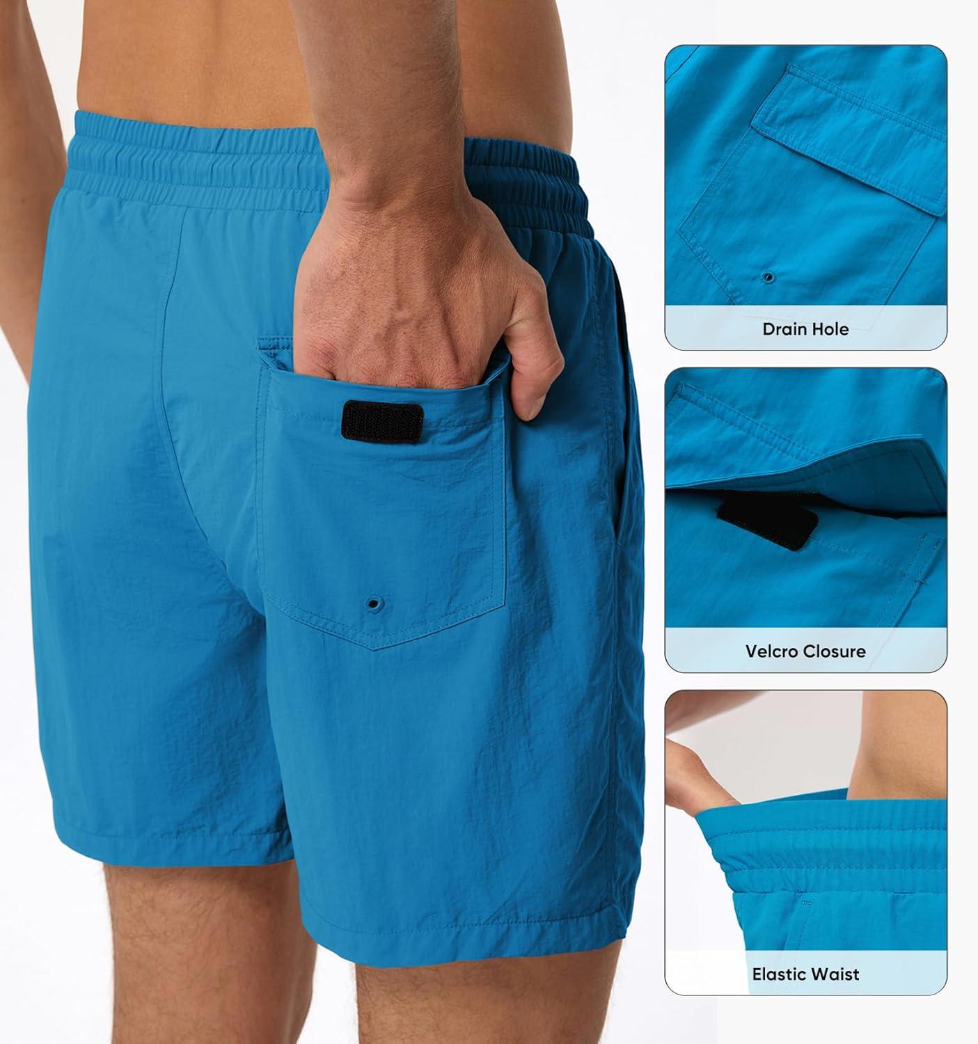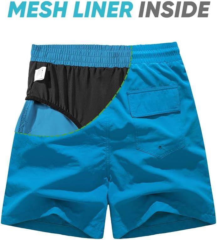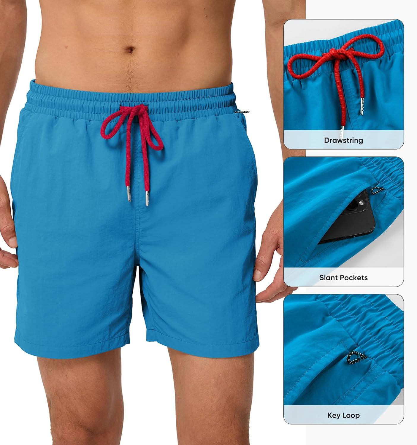 JMIERR Mens Swim Trunks with Mesh Lining Beach Swimming Shorts for Men Lightweight Swimwear Summer Sports Short(Blue)
