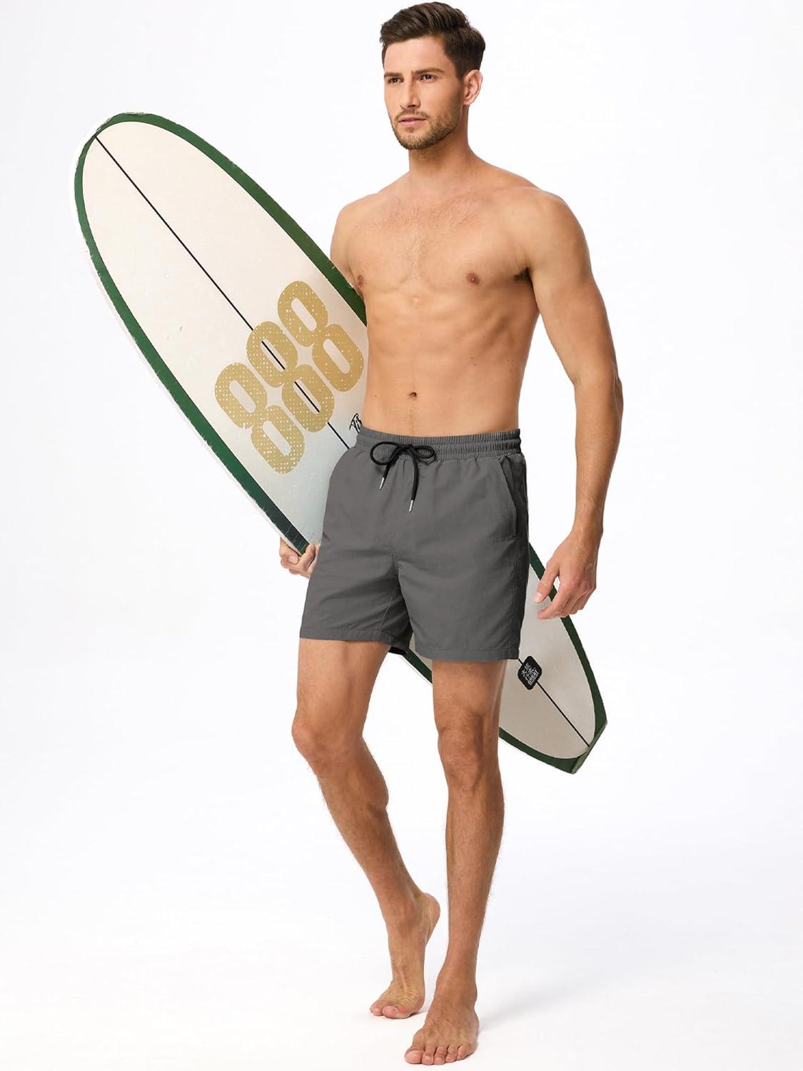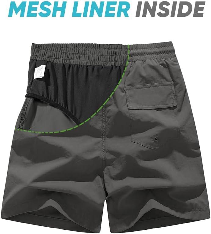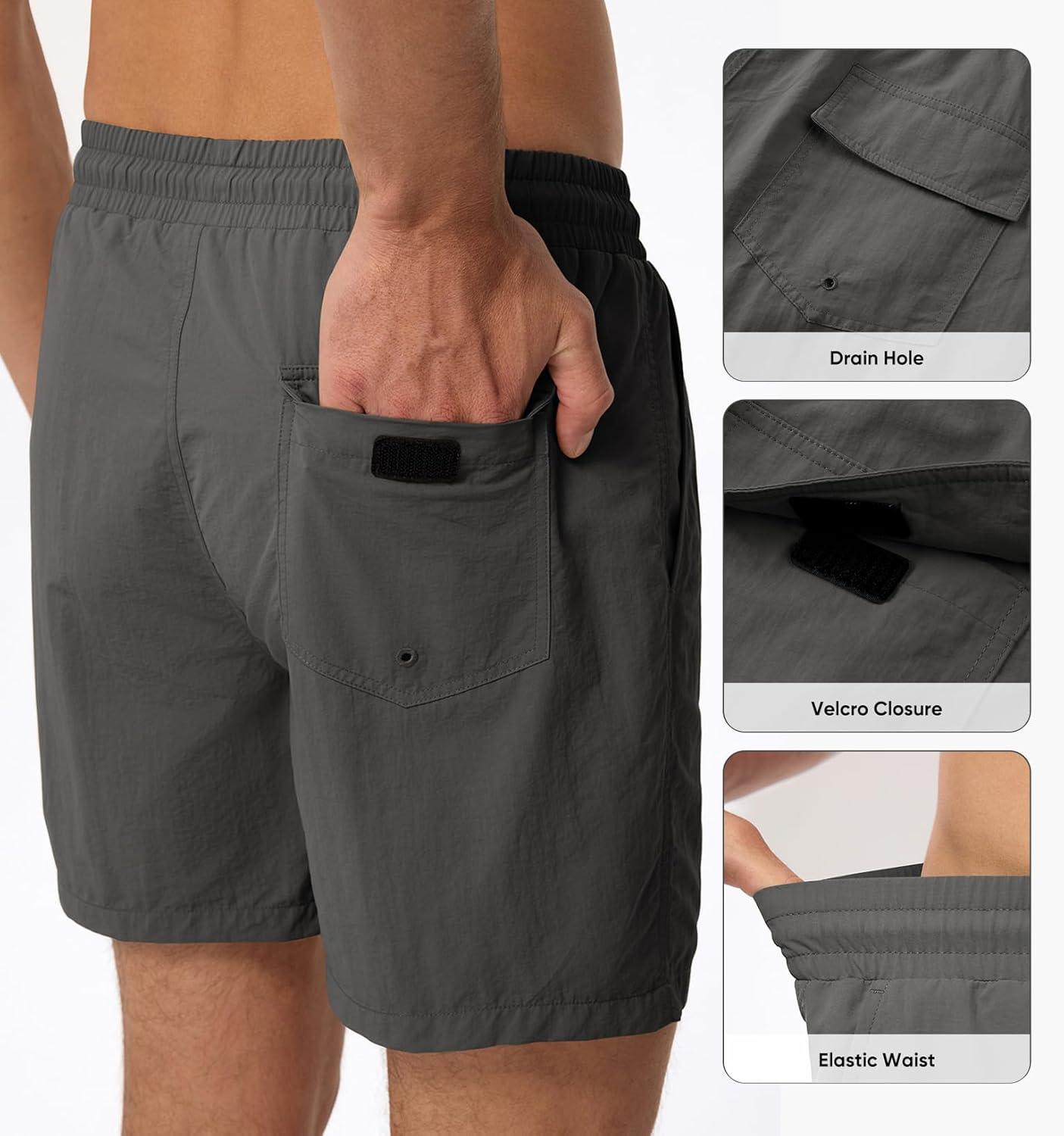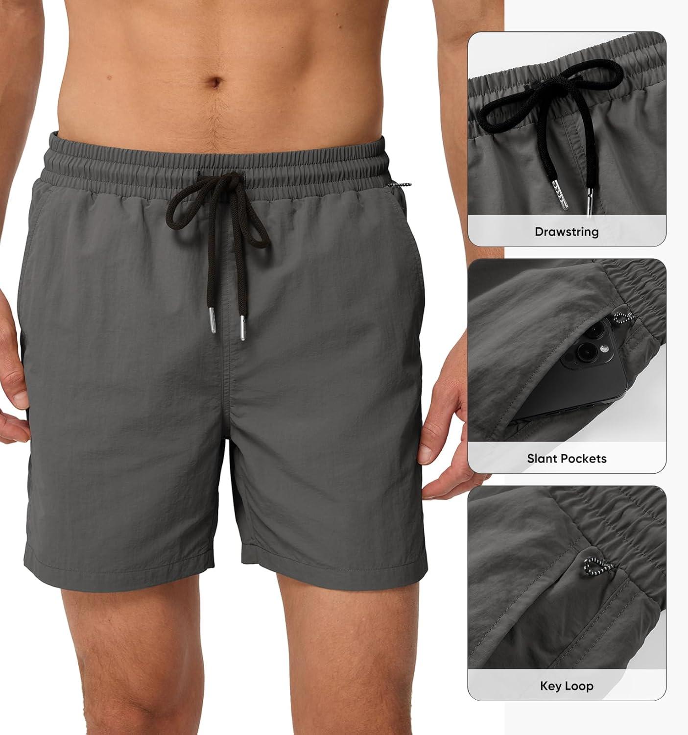 JMIERR Mens Swim Trunks with Mesh Lining Beach Swimming Shorts for Men Lightweight Swimwear Summer Sports Short(Dark Grey)