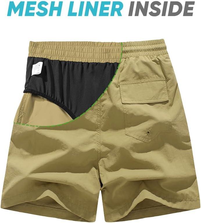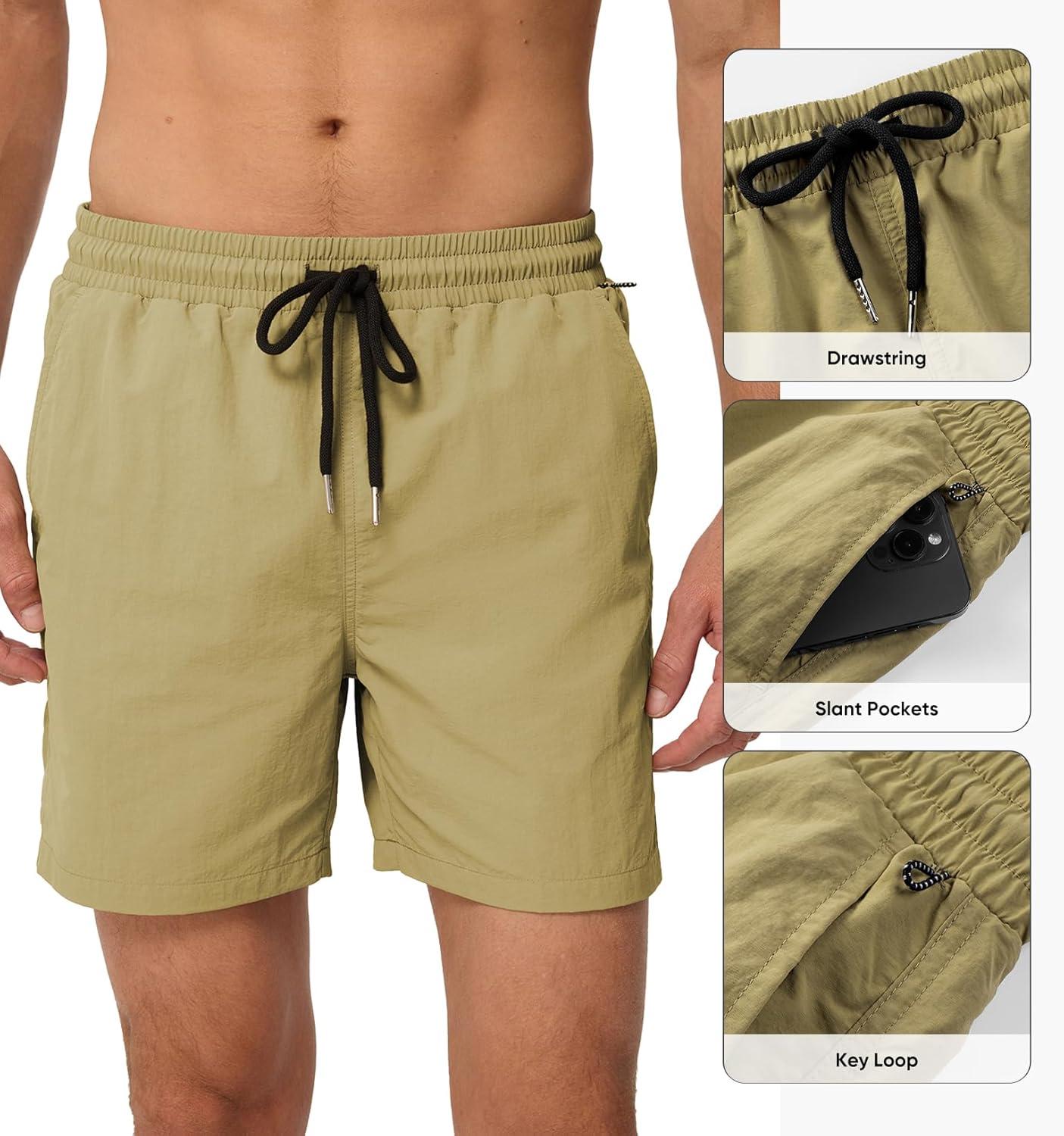 JMIERR Mens Swim Trunks with Mesh Lining Beach Swimming Shorts for Men Lightweight Swimwear Summer Sports Short(Khaki)