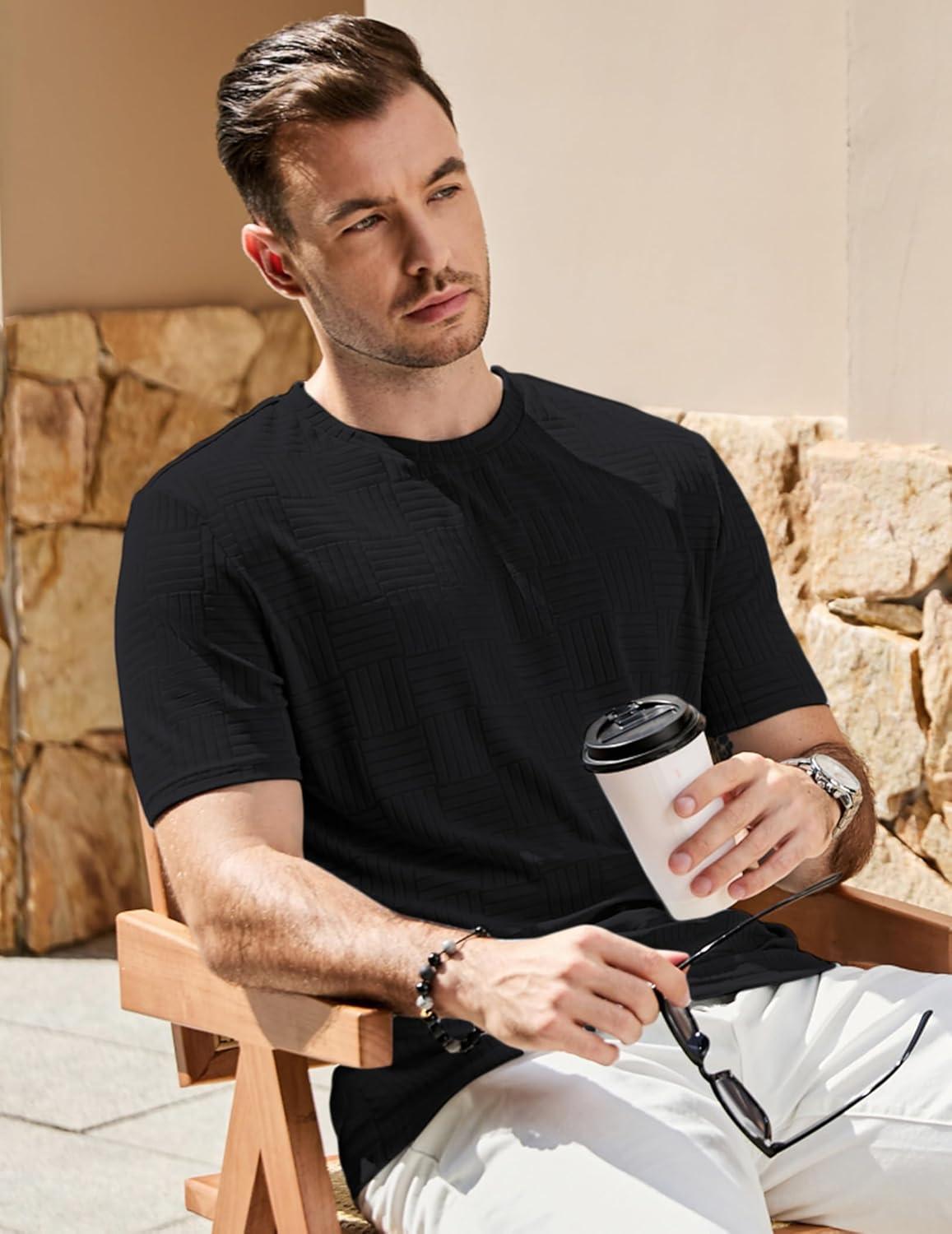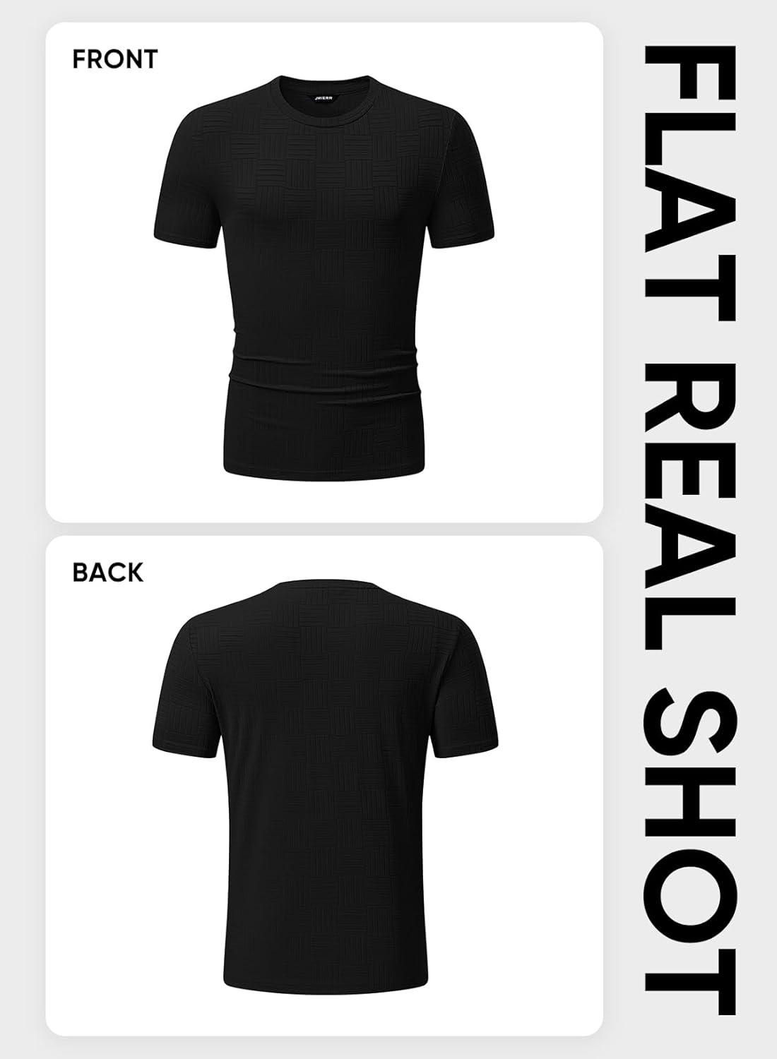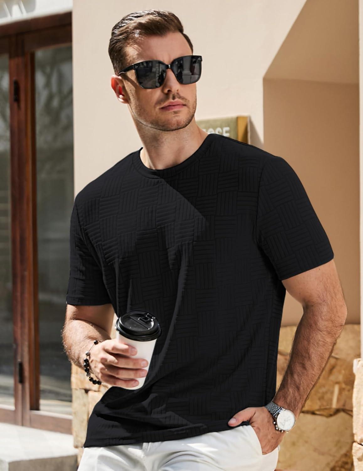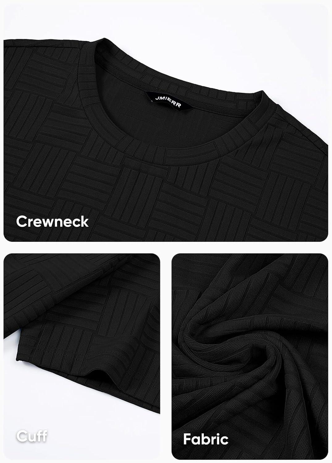 JMIERR Mens T-Shirt Casual Stretch Solid Crewneck Short Sleeve Tees Textured Shirts(Black)
