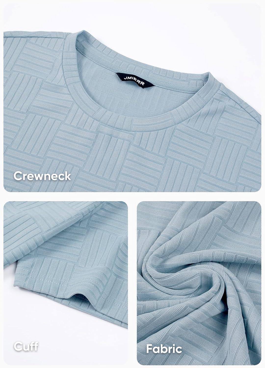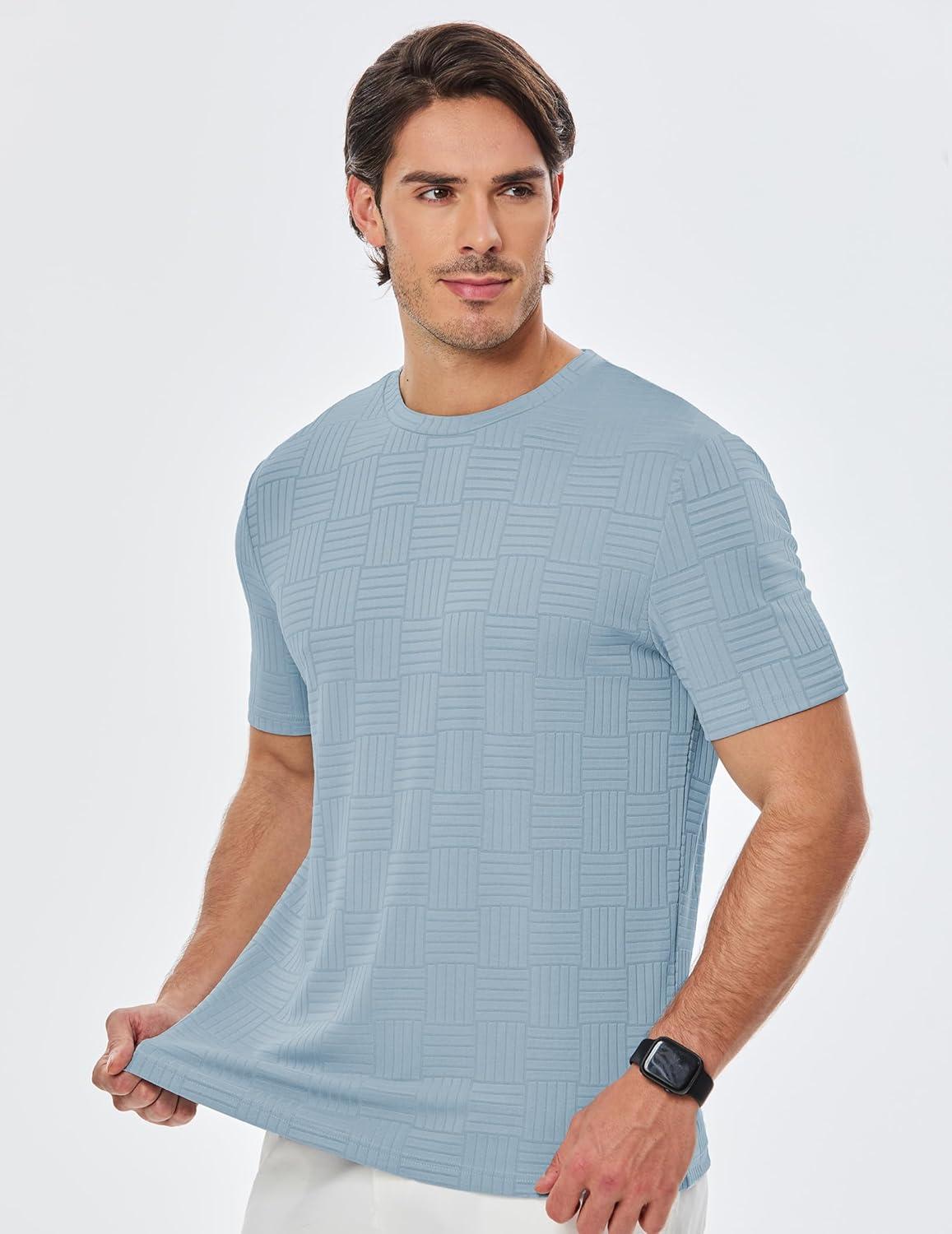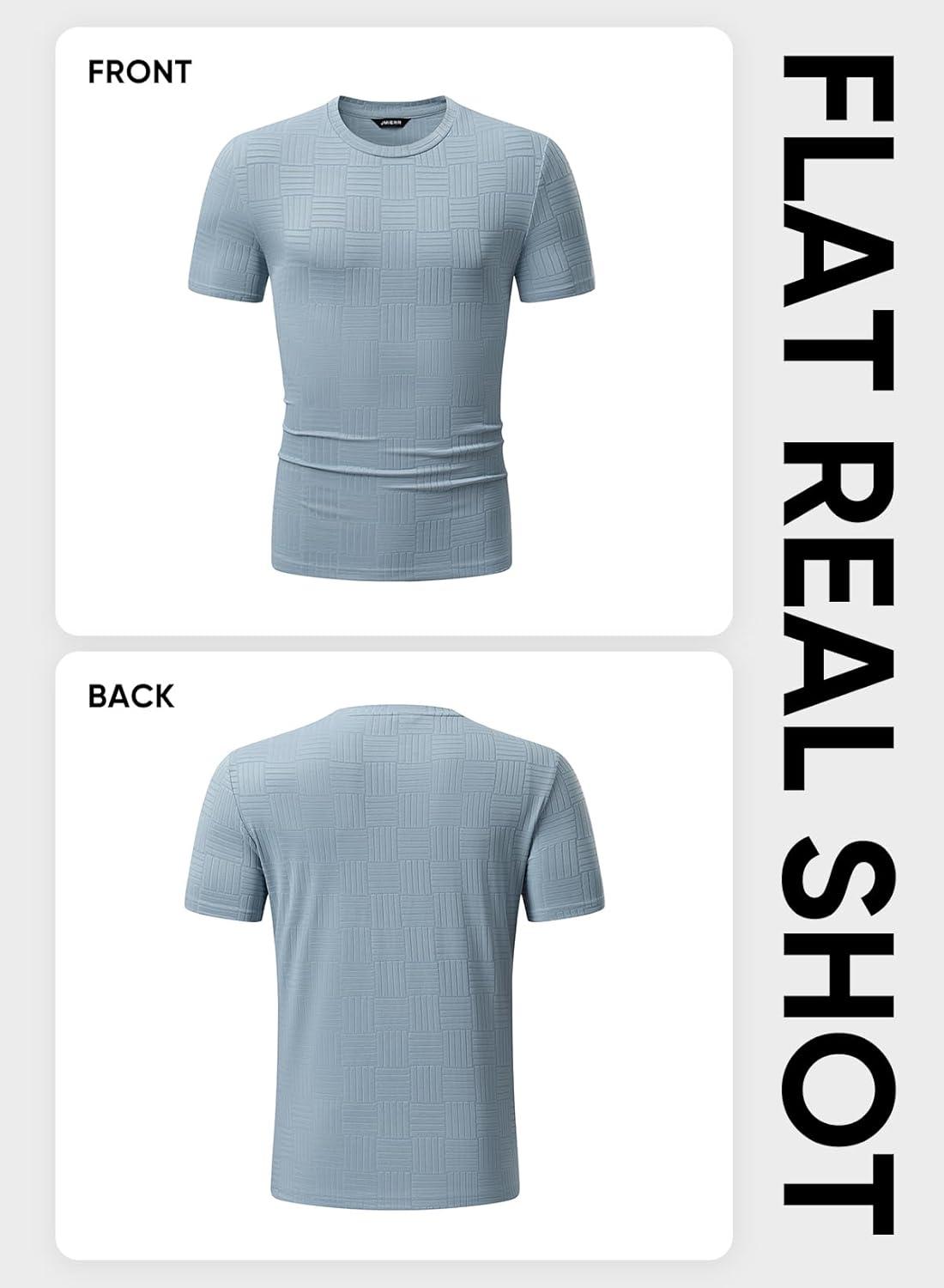 JMIERR Mens T-Shirt Casual Stretch Solid Crewneck Short Sleeve Tees Textured Shirts(High Rise)