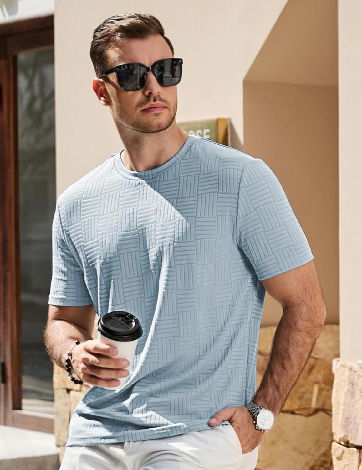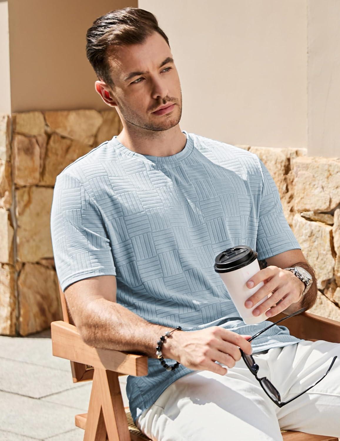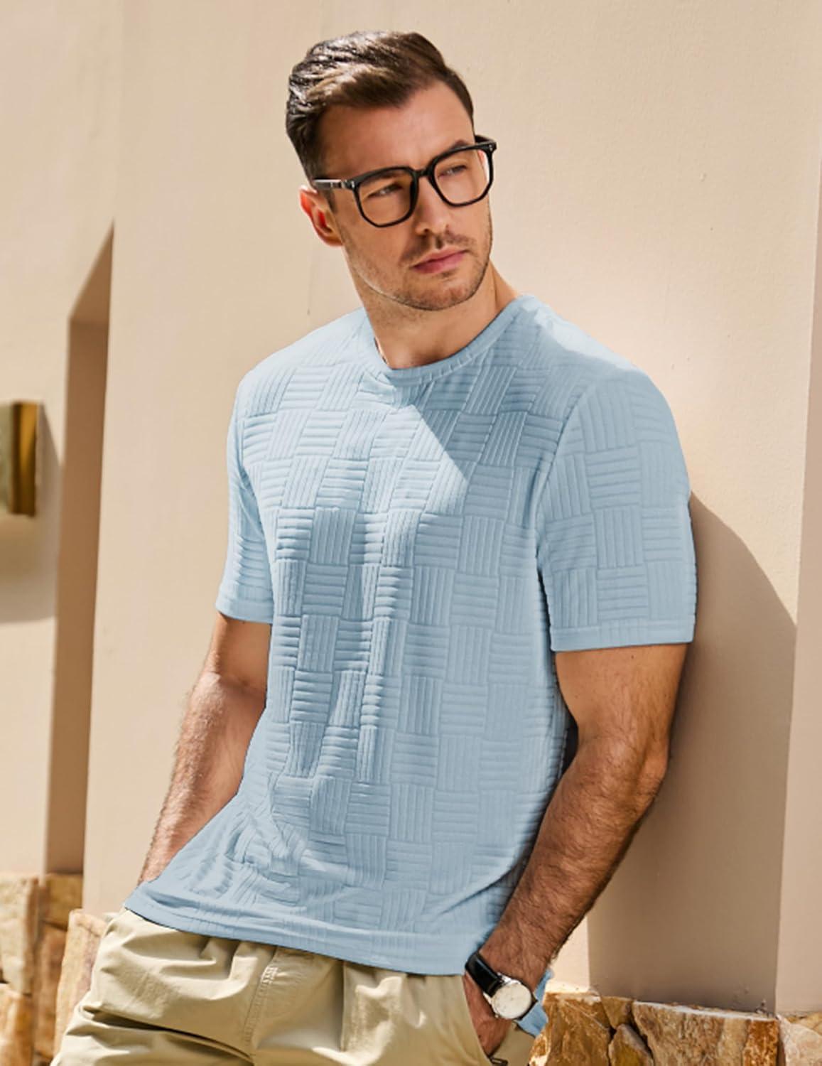 JMIERR Mens T-Shirt Casual Stretch Solid Crewneck Short Sleeve Tees Textured Shirts(High Rise)