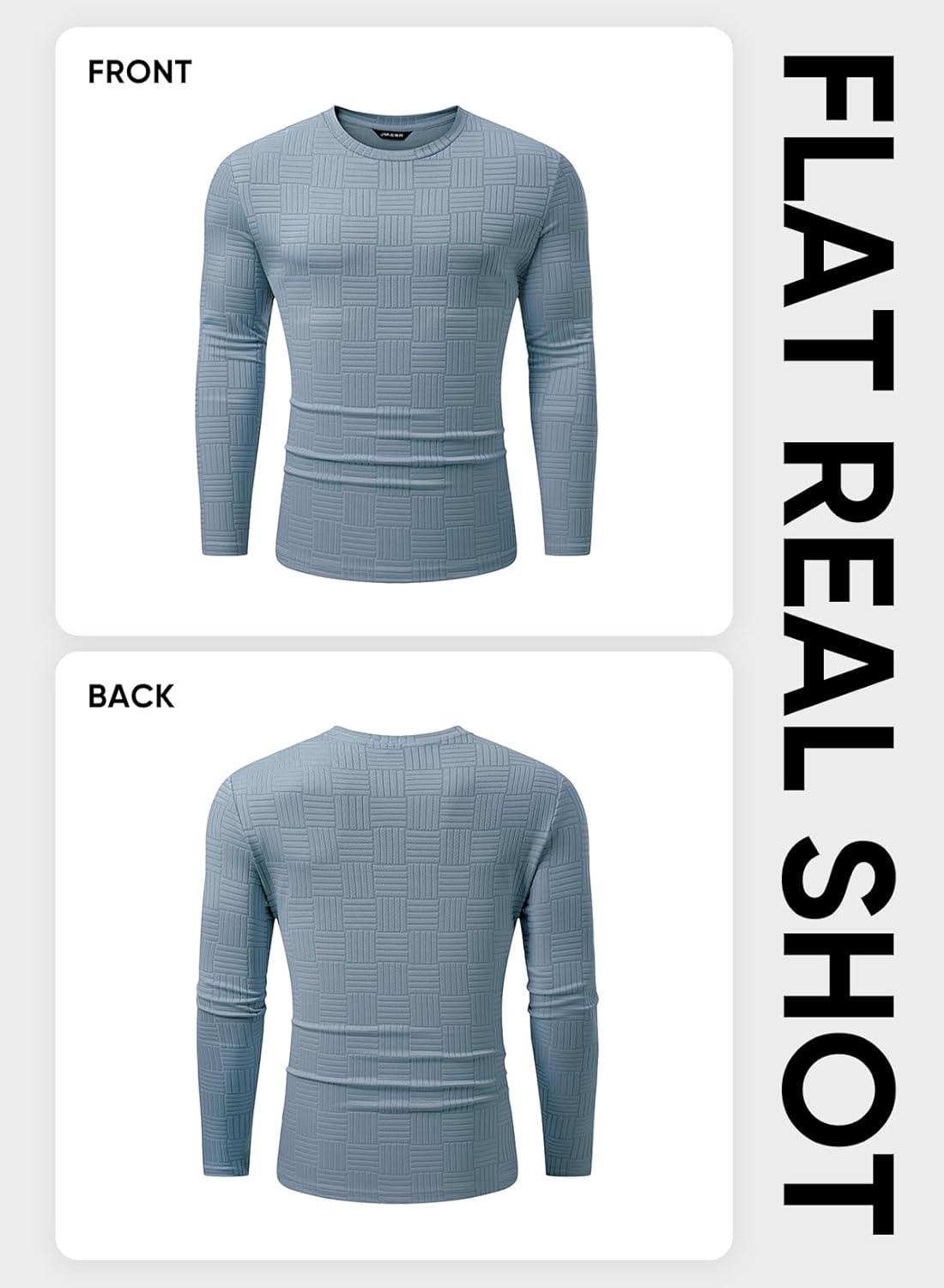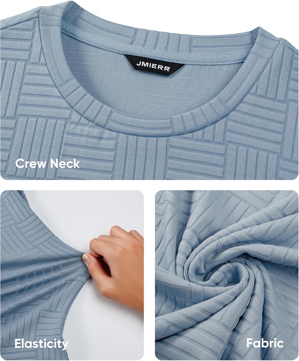 JMIERR Mens T-Shirt Casual Stretch Solid Crewneck Short Sleeve Tees Textured Shirts(Long Sleeve – High Rise)