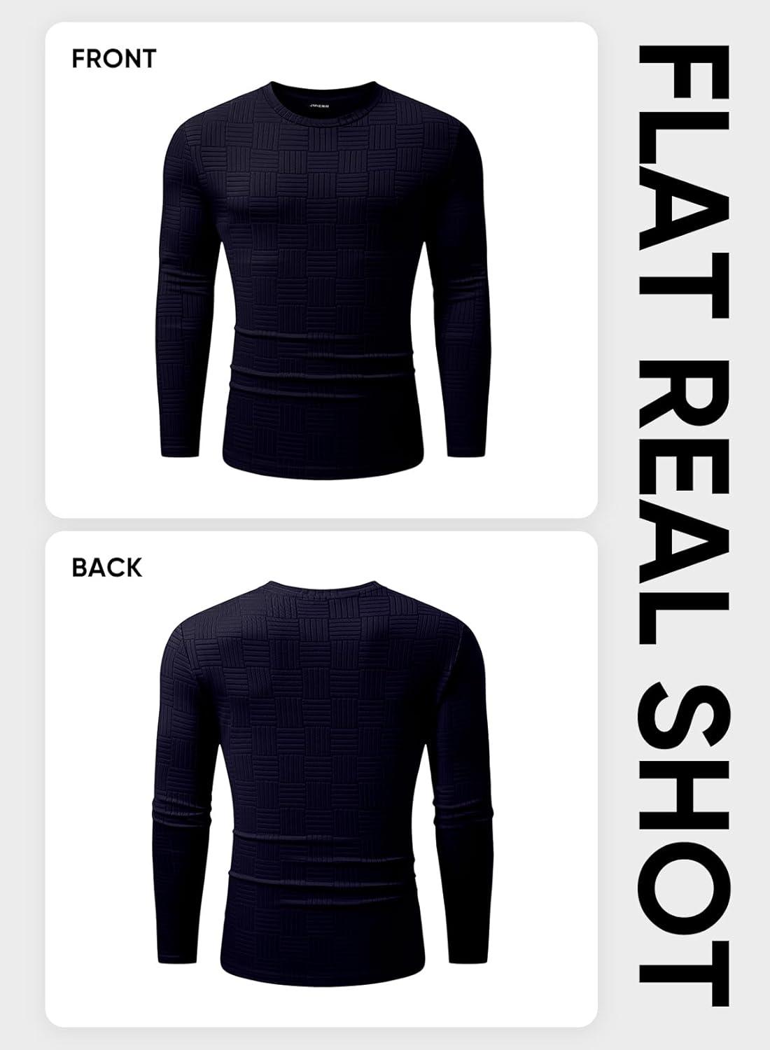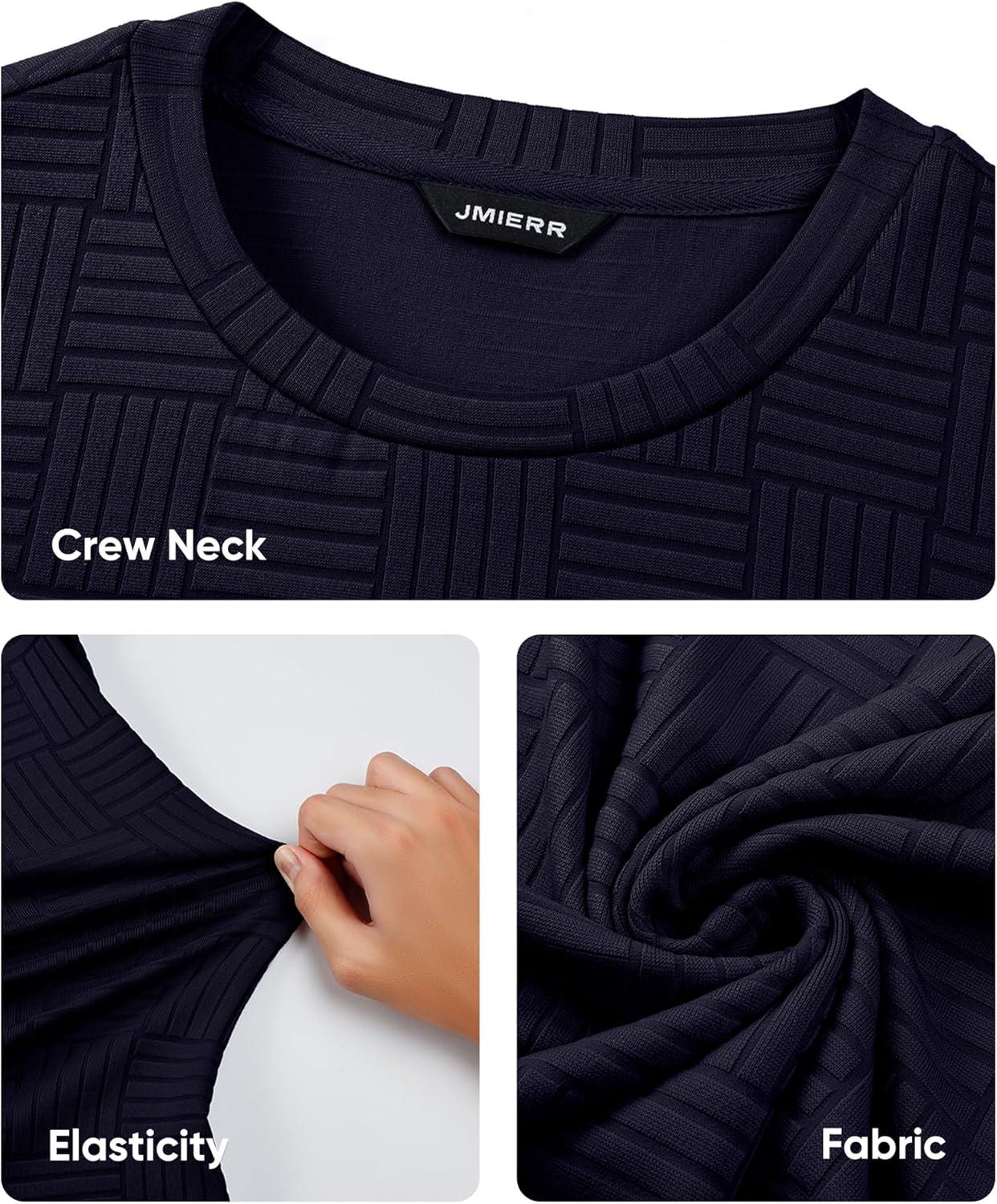 JMIERR Mens T-Shirt Casual Stretch Solid Crewneck Short Sleeve Tees Textured Shirts(Long Sleeve – Sail Blue)
