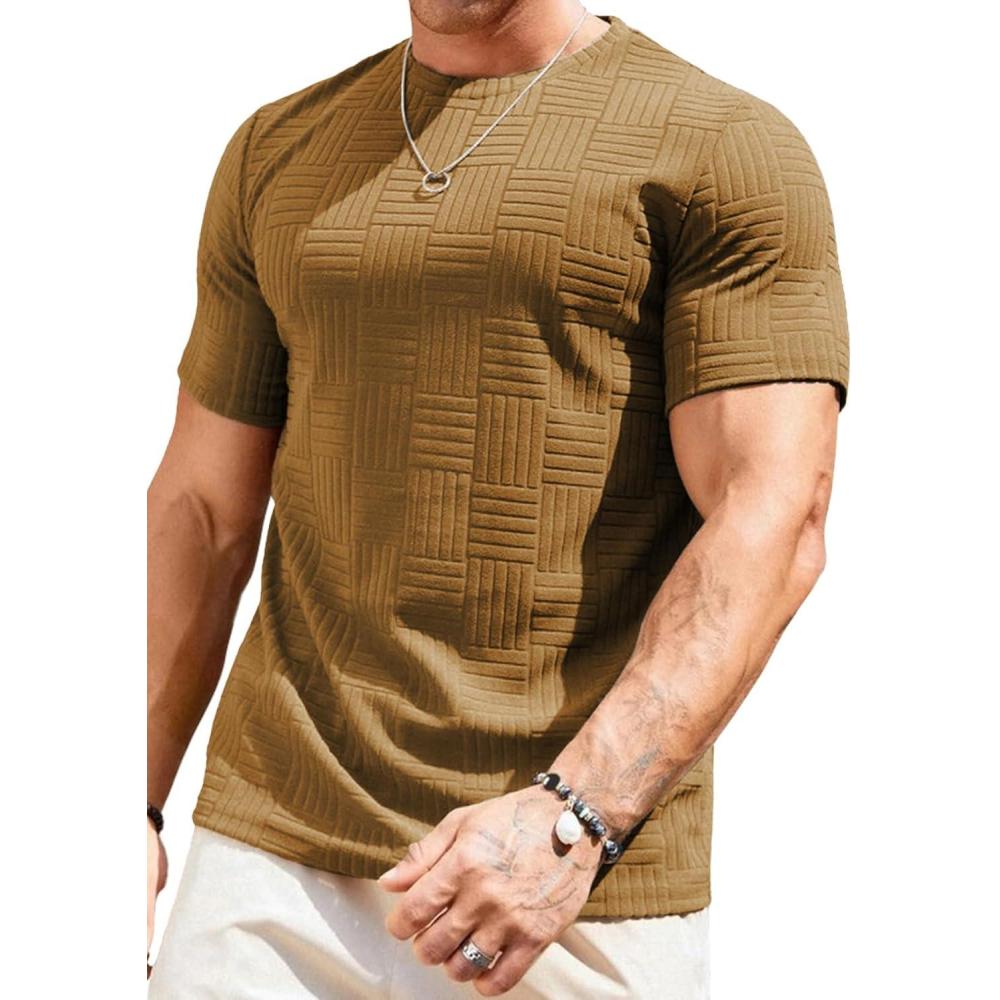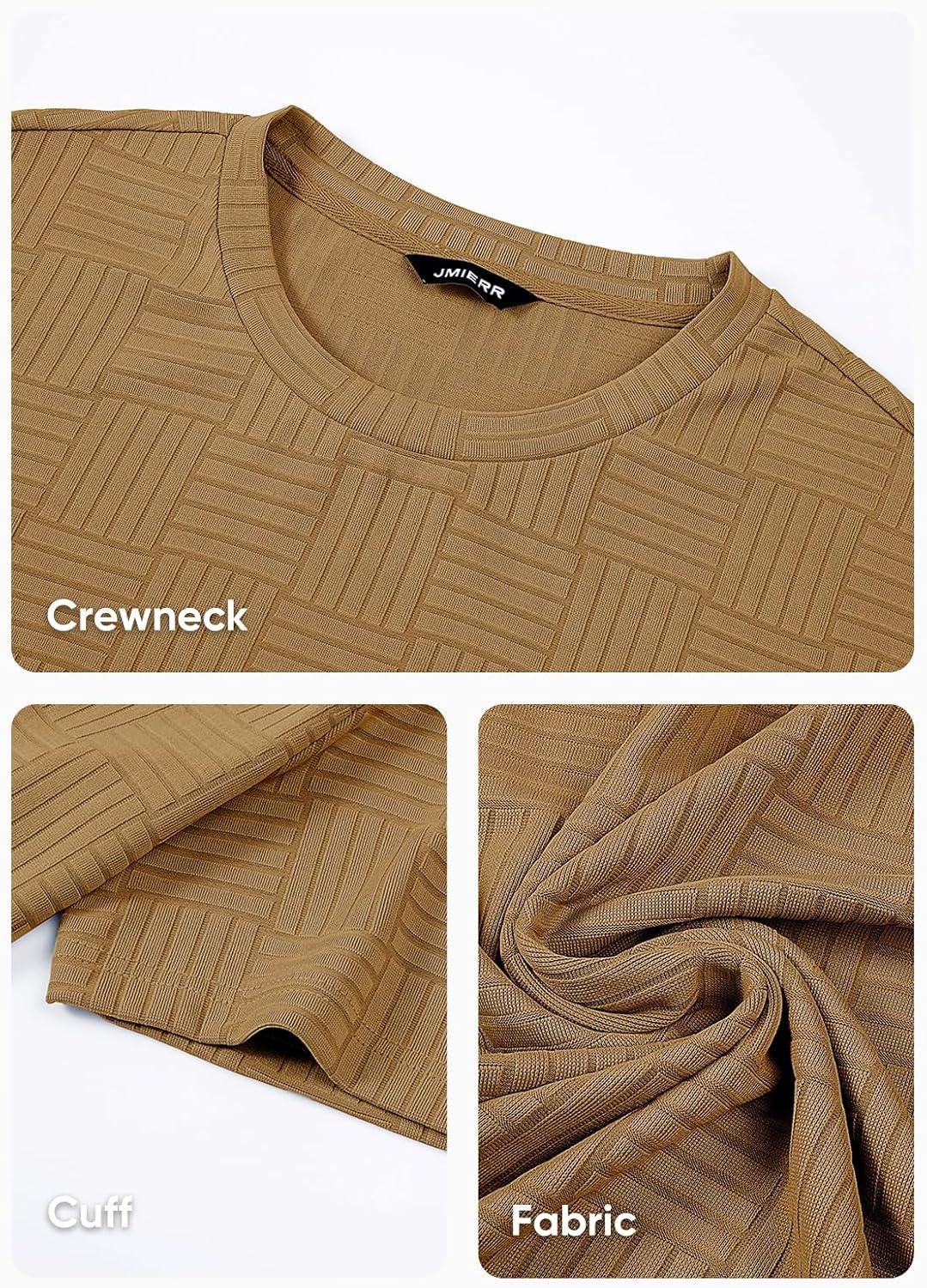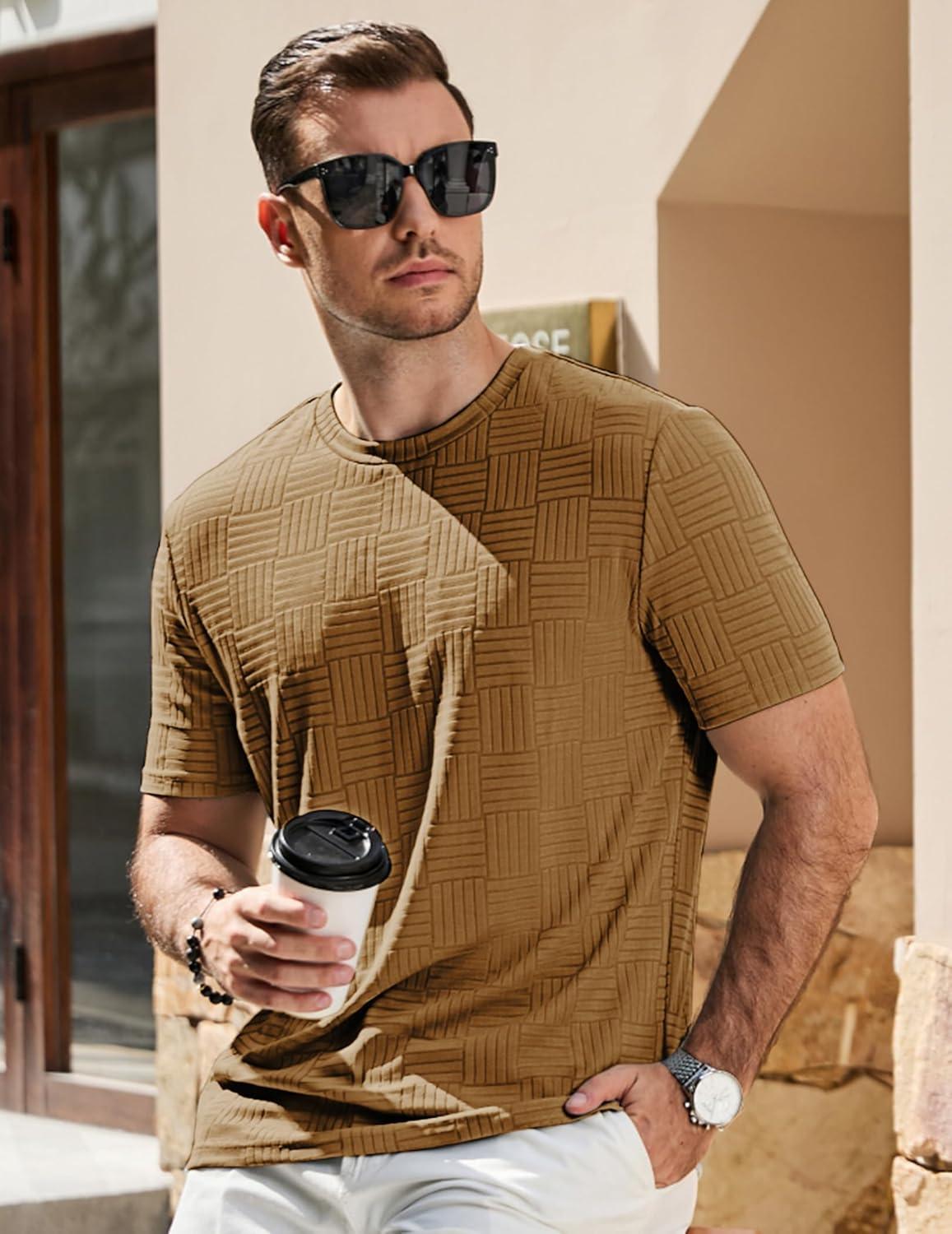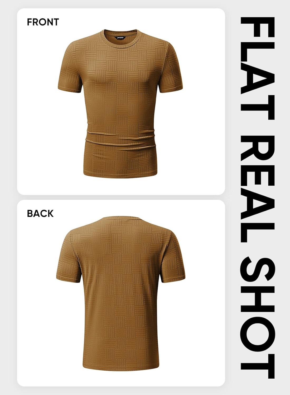 JMIERR Mens T-Shirt Casual Stretch Solid Crewneck Short Sleeve Tees Textured Shirts(Mustard)