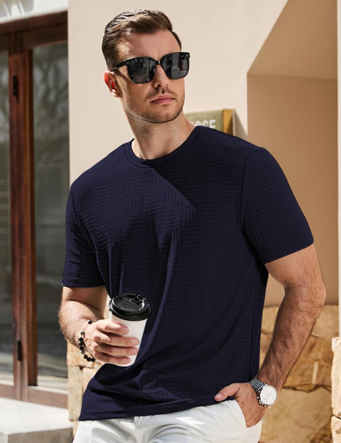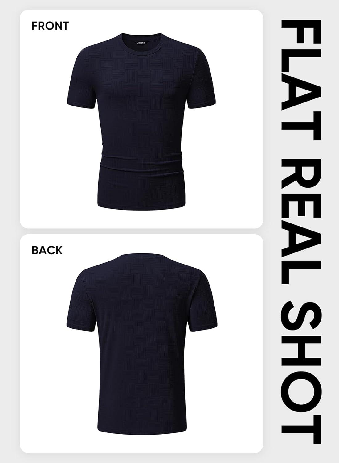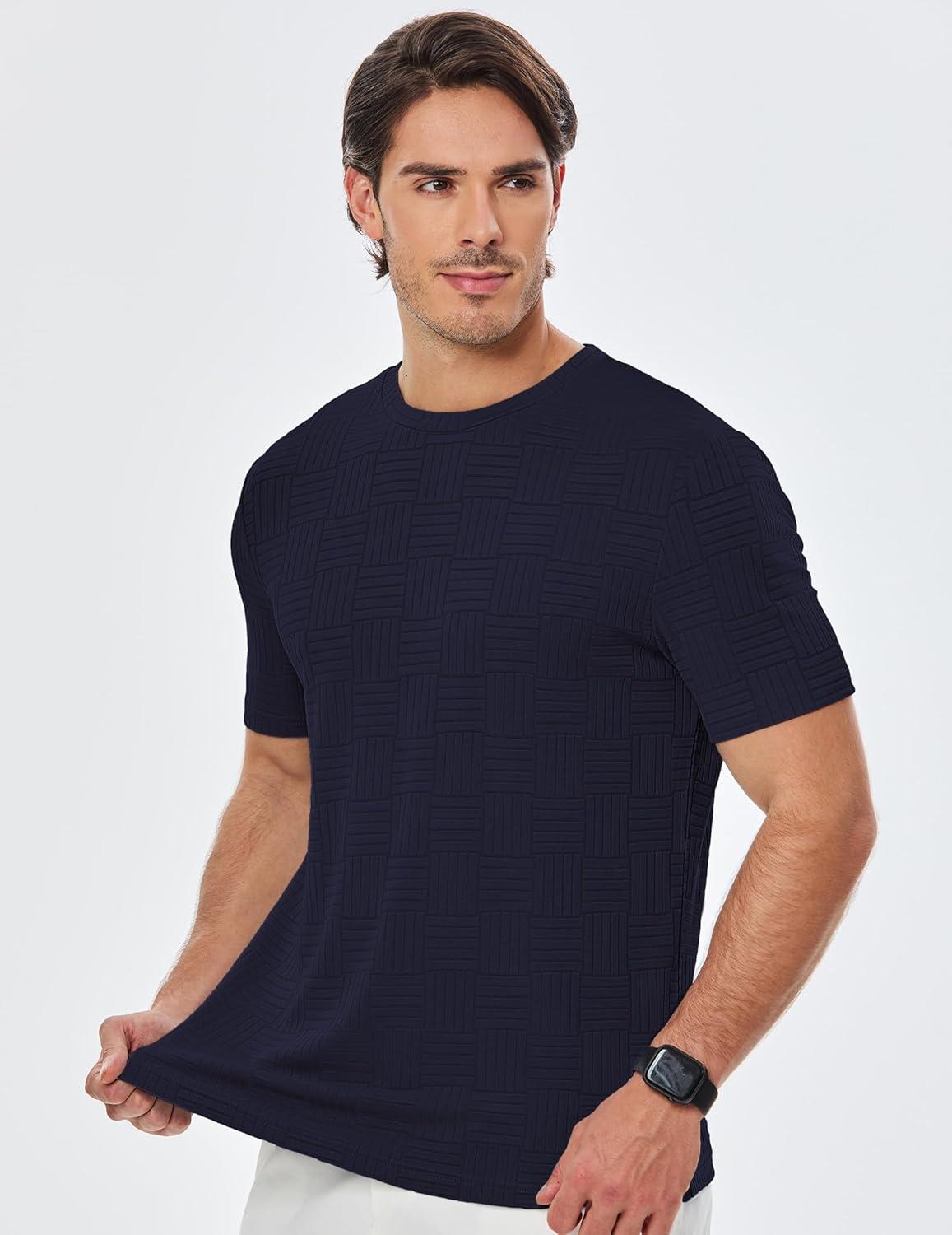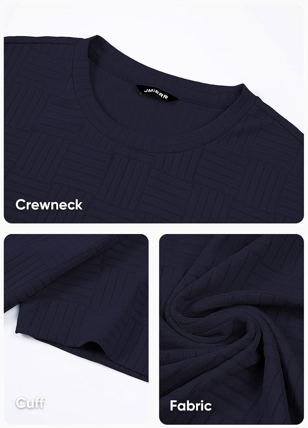 JMIERR Mens T-Shirt Casual Stretch Solid Crewneck Short Sleeve Tees Textured Shirts(Sail Blue)