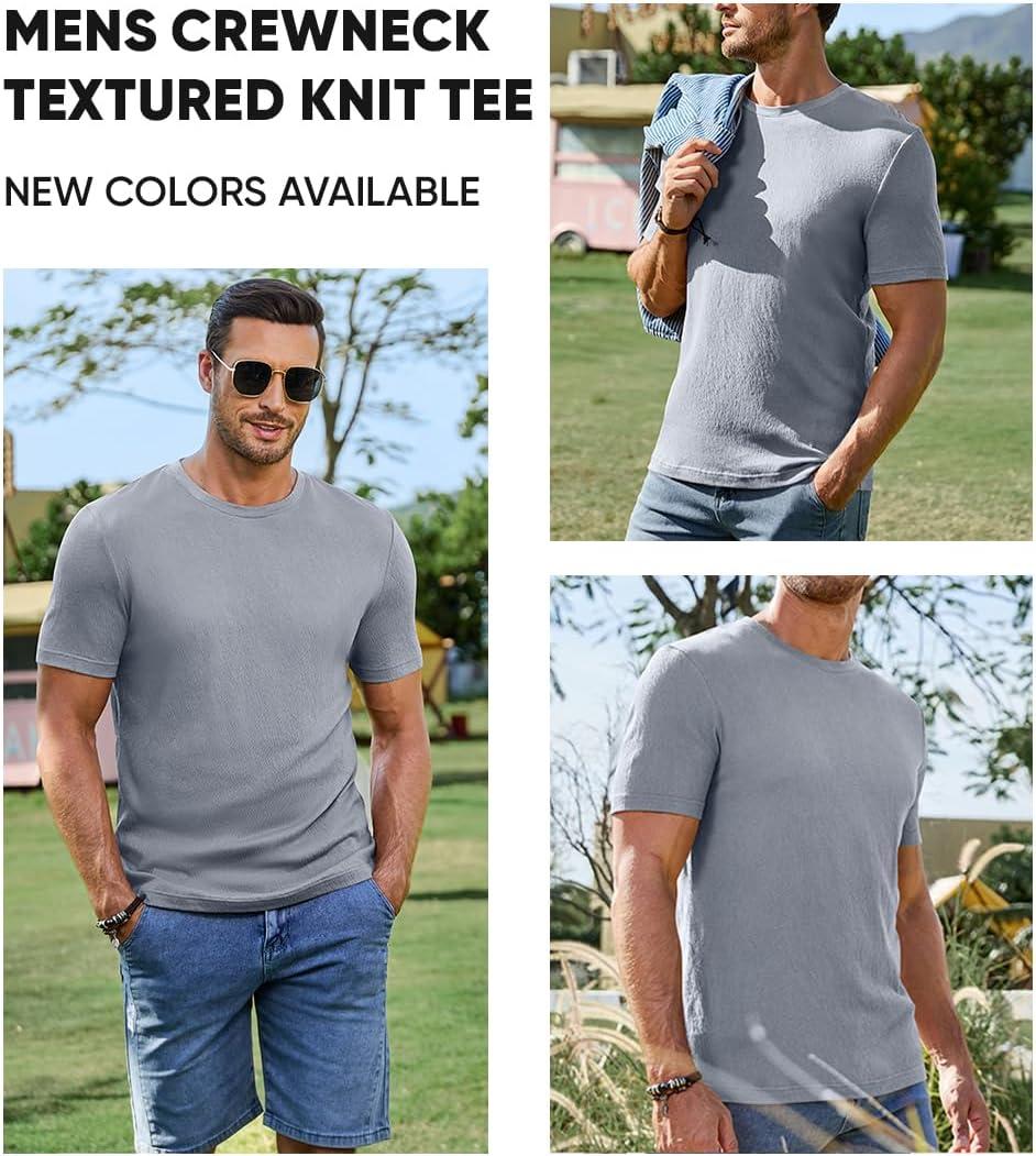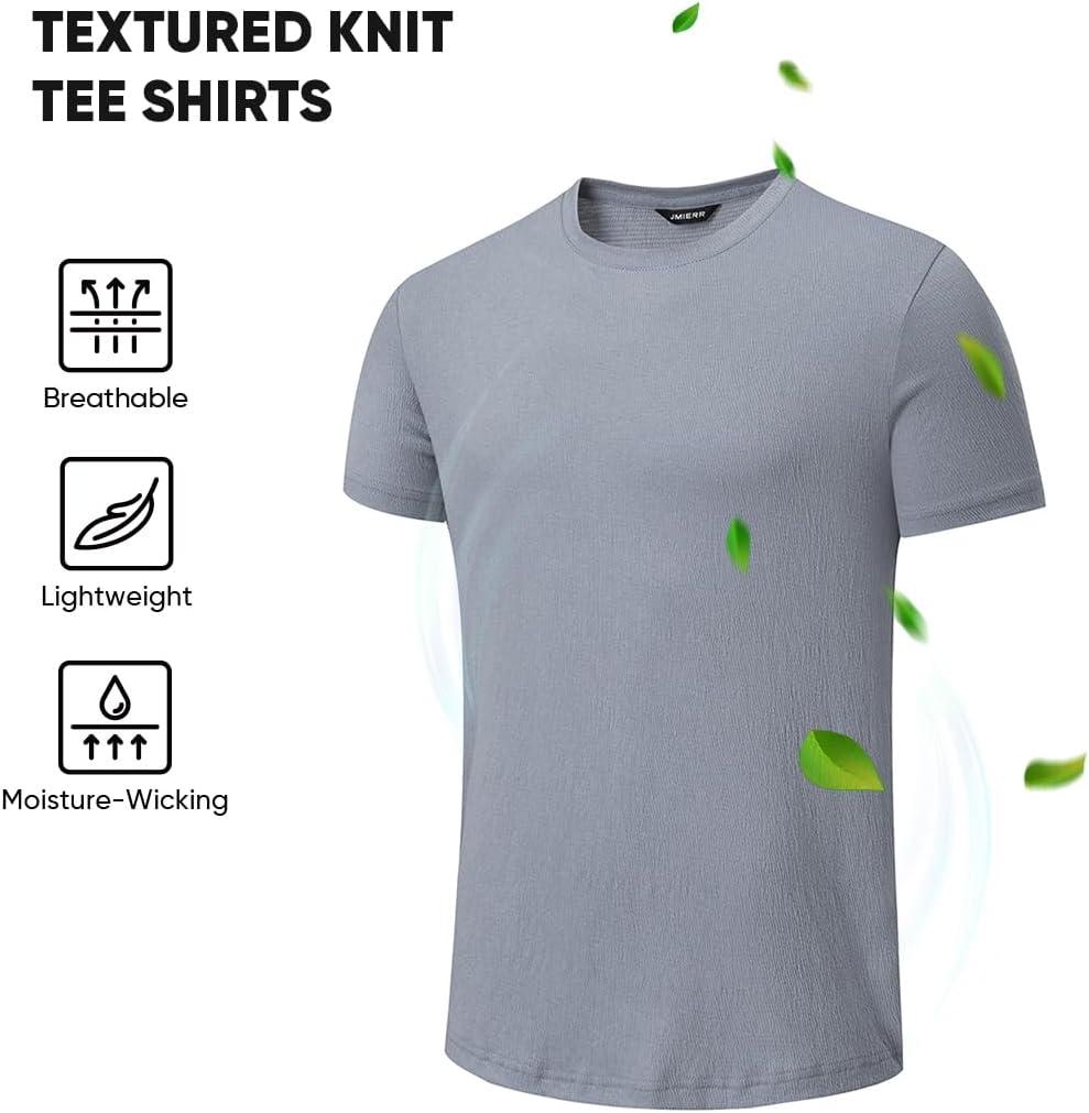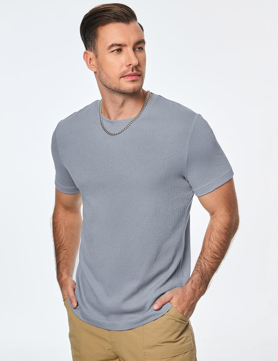 JMIERR Mens T-Shirt Short Sleeve Muscle Textured Knit Crewneck Slim T Shirt Gym Workout Athletic Tee Shirts(A Dusk Blue)