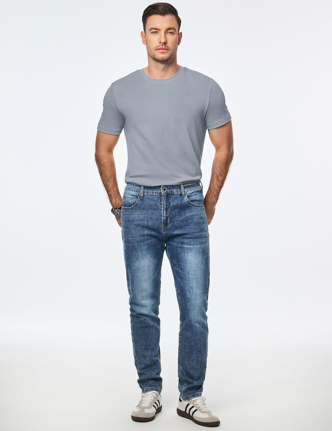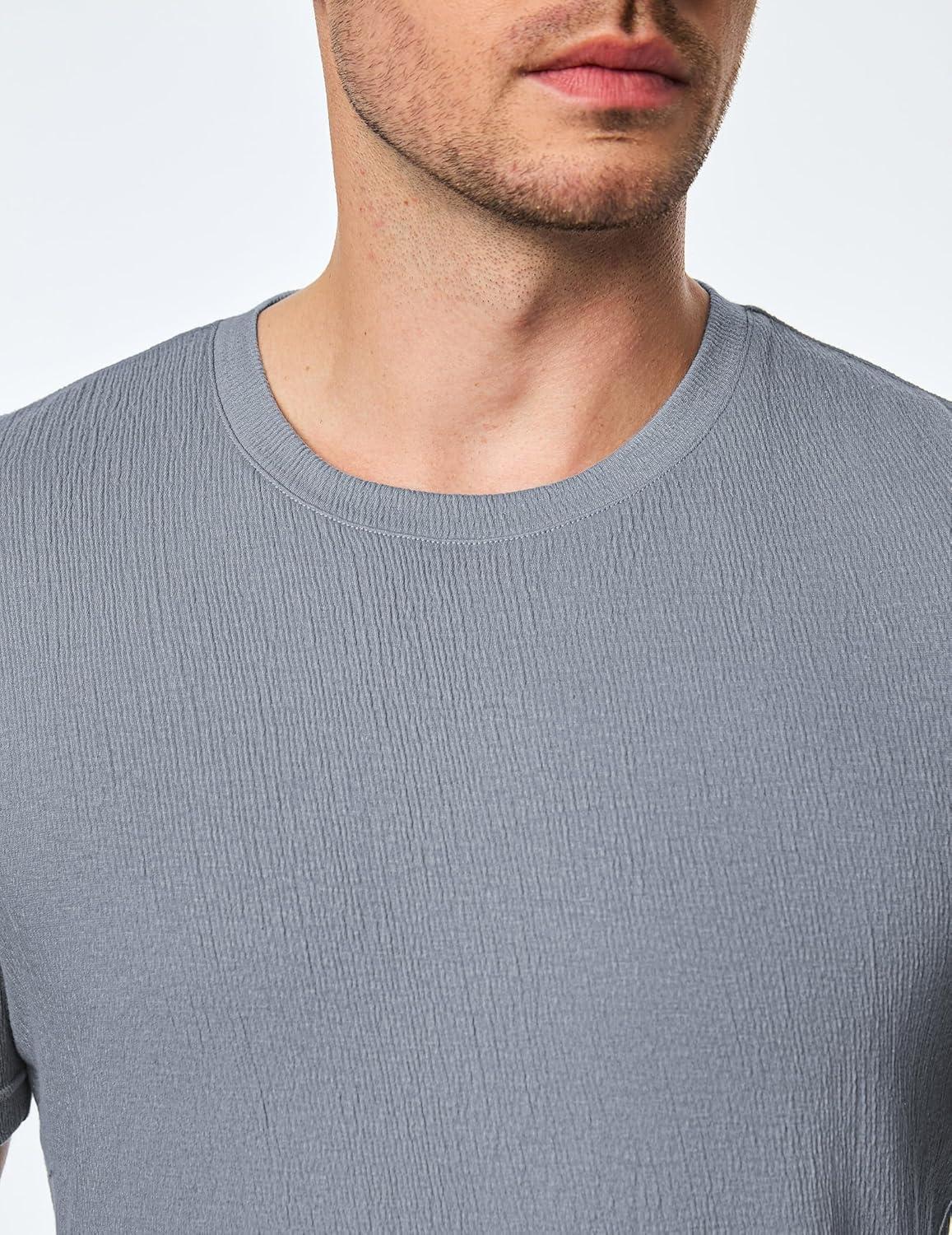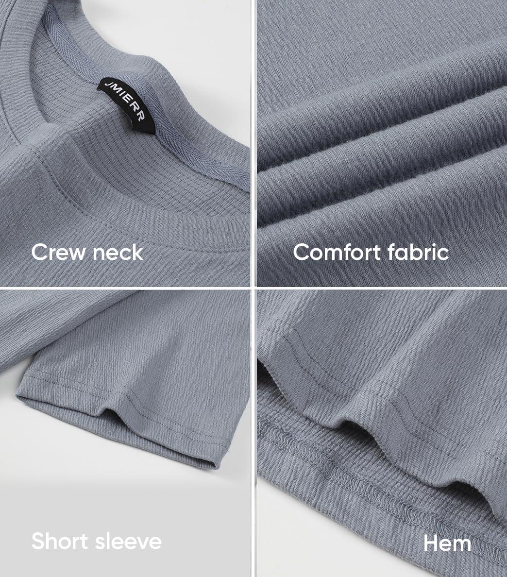 JMIERR Mens T-Shirt Short Sleeve Muscle Textured Knit Crewneck Slim T Shirt Gym Workout Athletic Tee Shirts(A Dusk Blue)