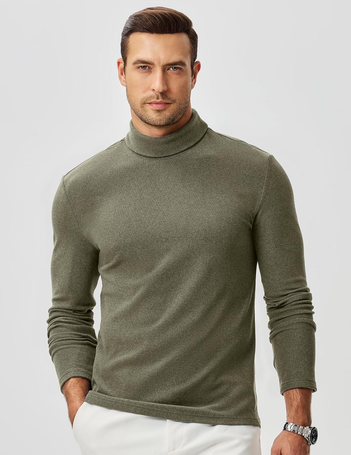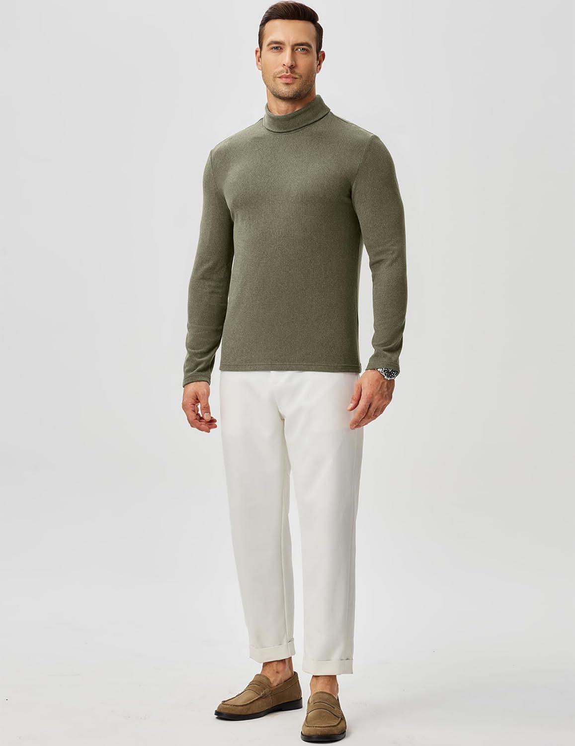 JMIERR Men’s Thermal Mock Turtleneck Shirts Casual Long Sleeve Lightweight Pullover Sweaters Undershirt Slim Fit Top(Jungle Green)