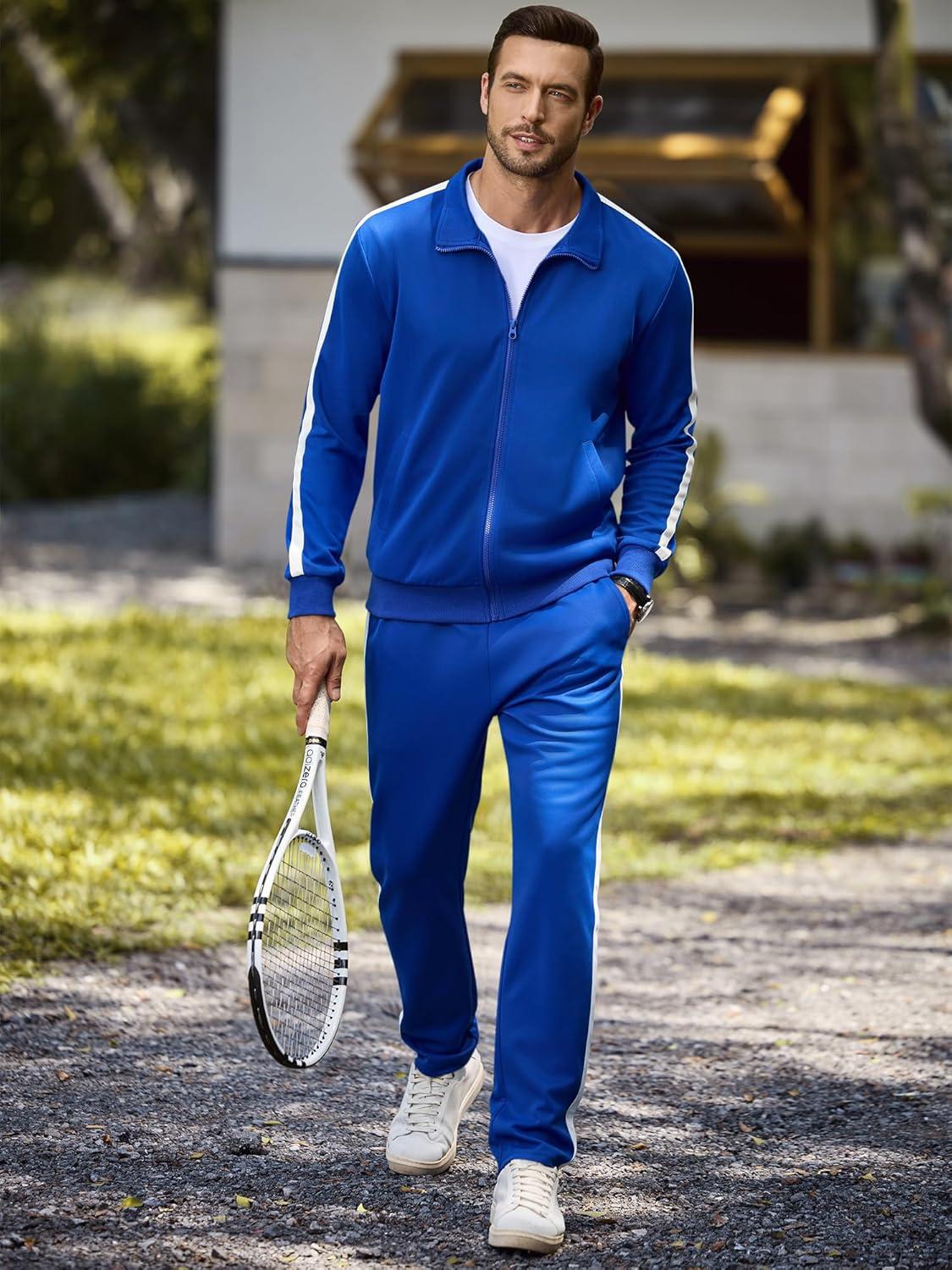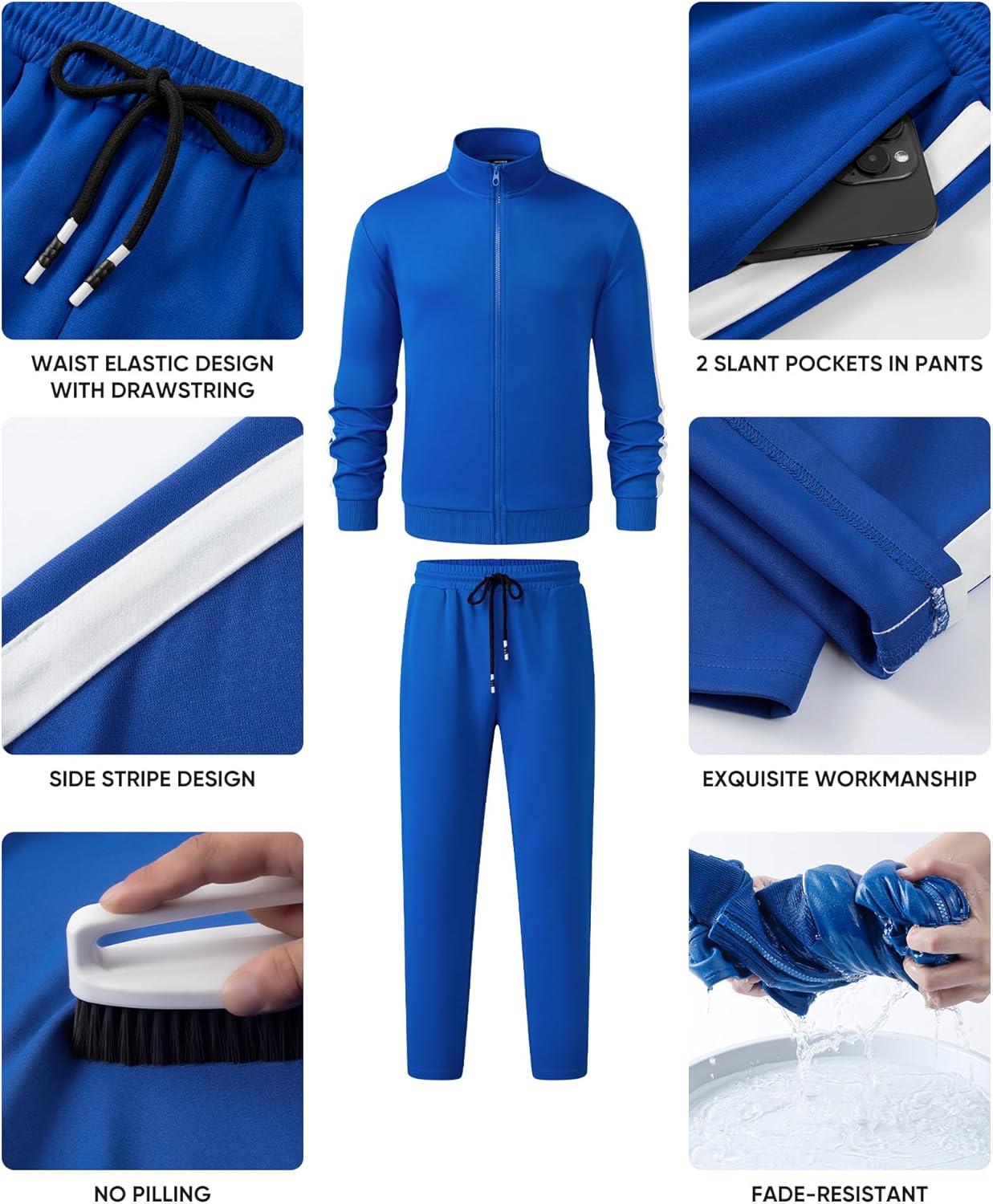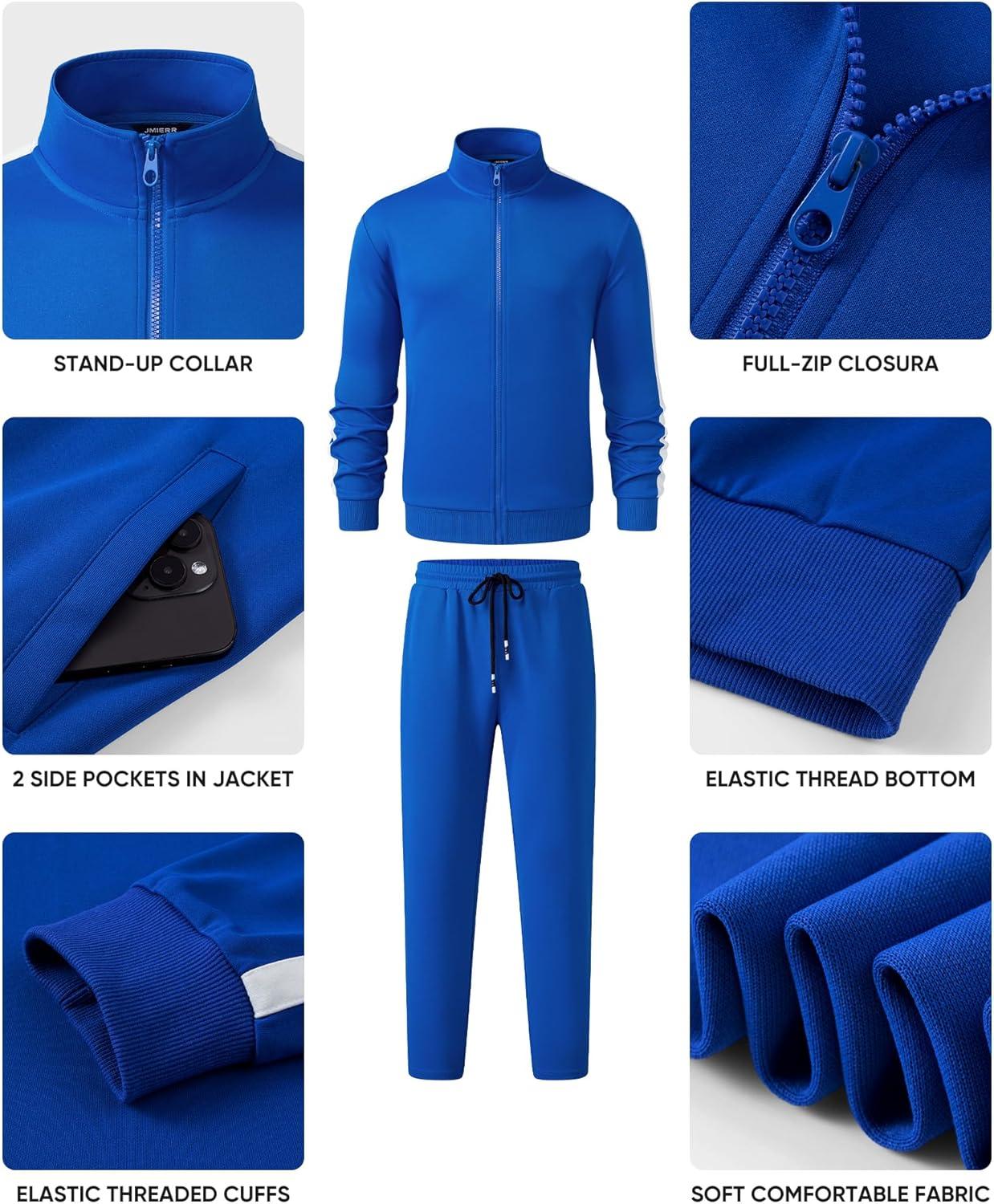 JMIERR Men’s Track Suits 2 Piece Full Zip Sports Outfits Set Sweatshirt and Joggers Sweatpants(Blue)