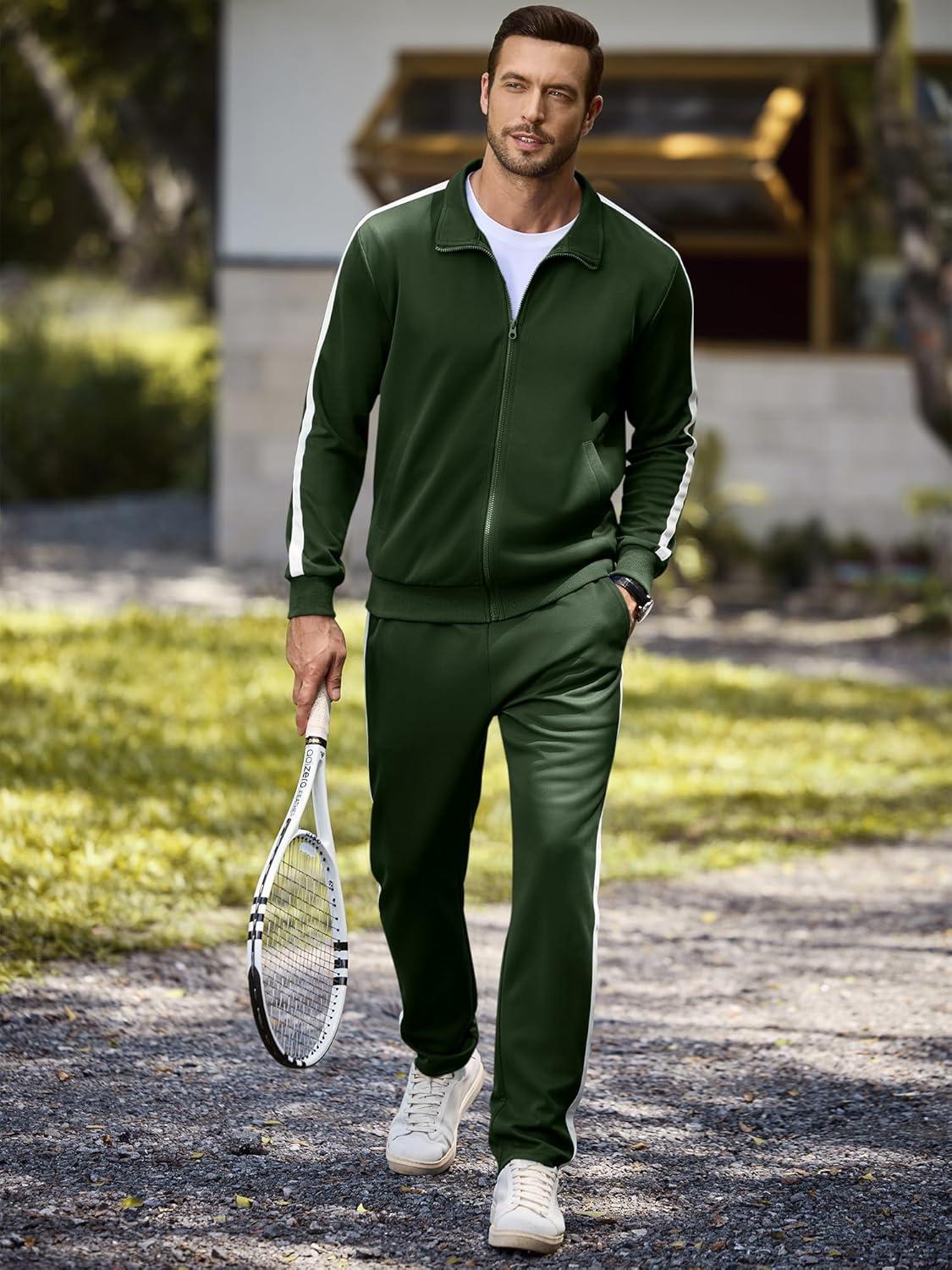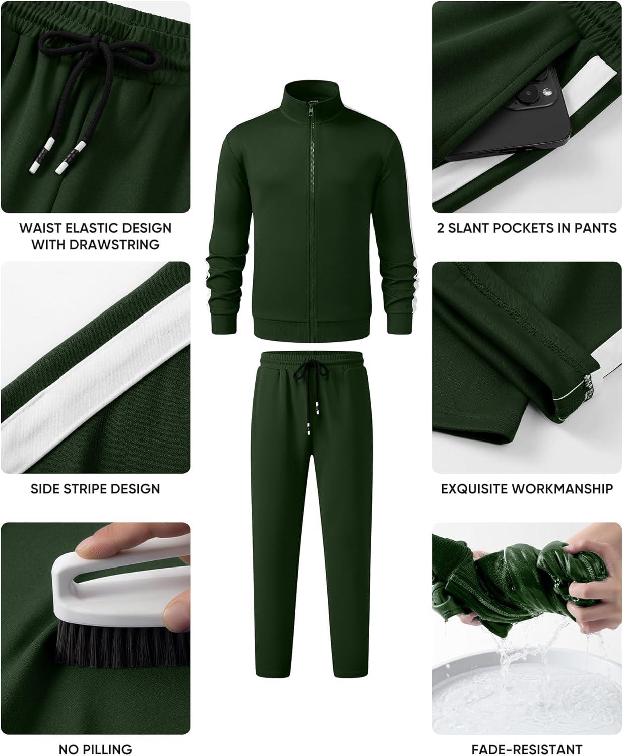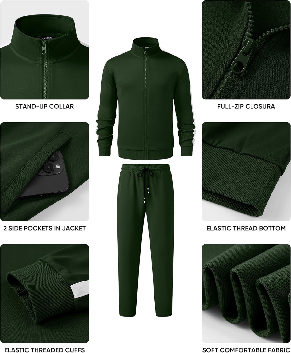 JMIERR Men’s Track Suits 2 Piece Full Zip Sports Outfits Set Sweatshirt and Joggers Sweatpants(Green)