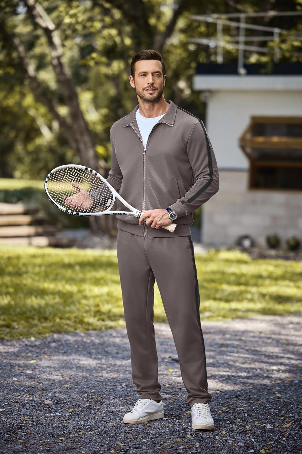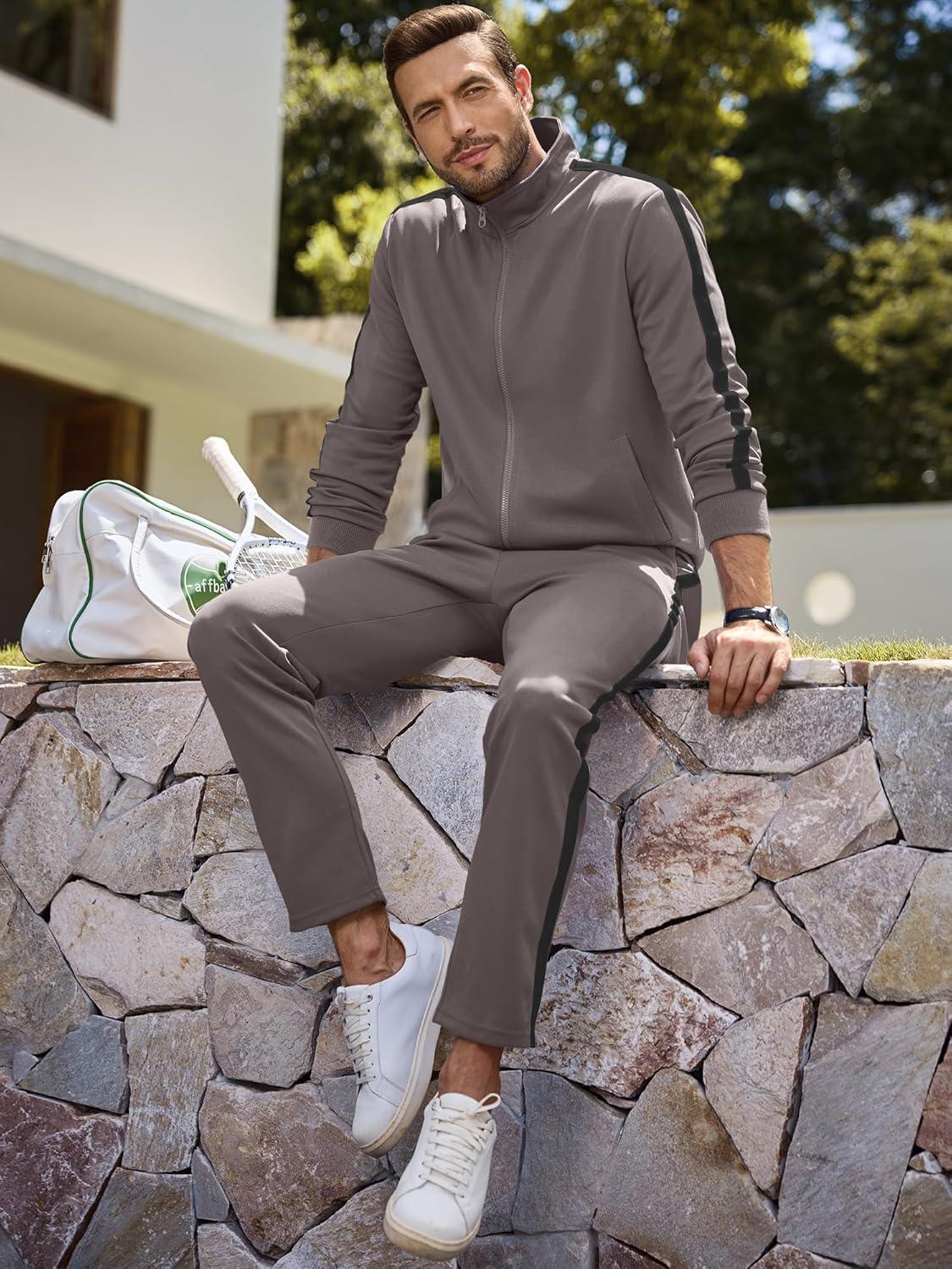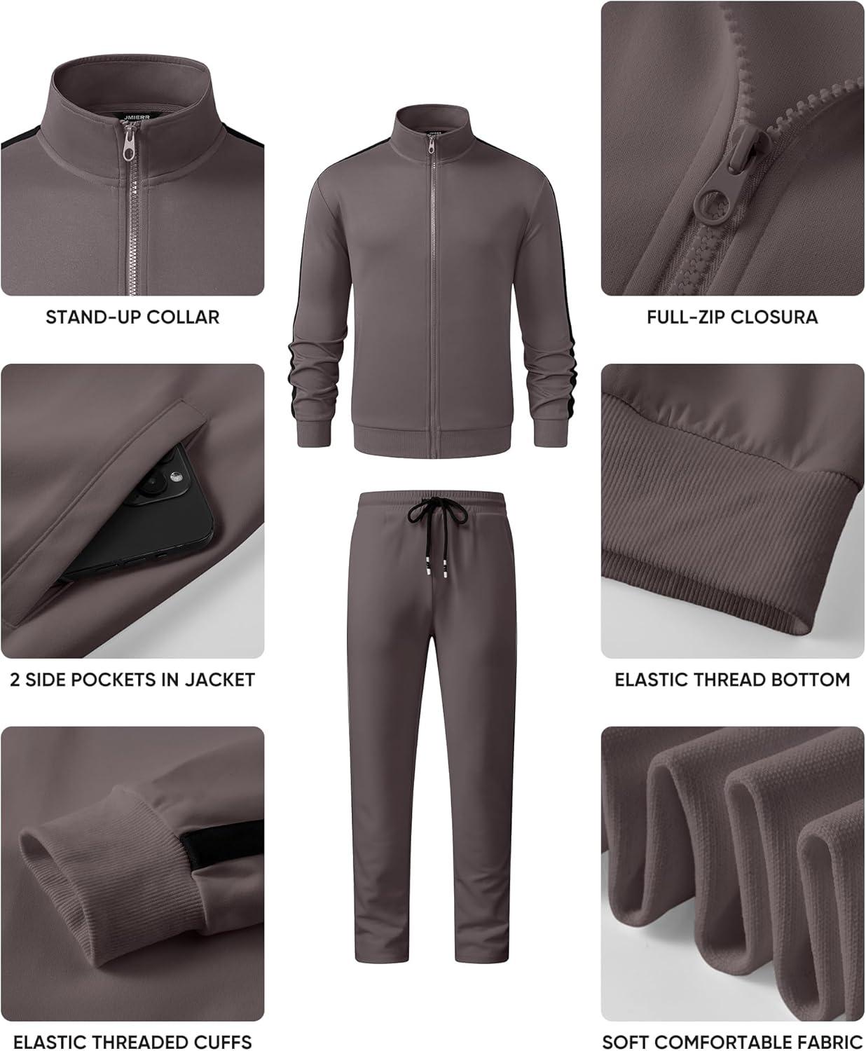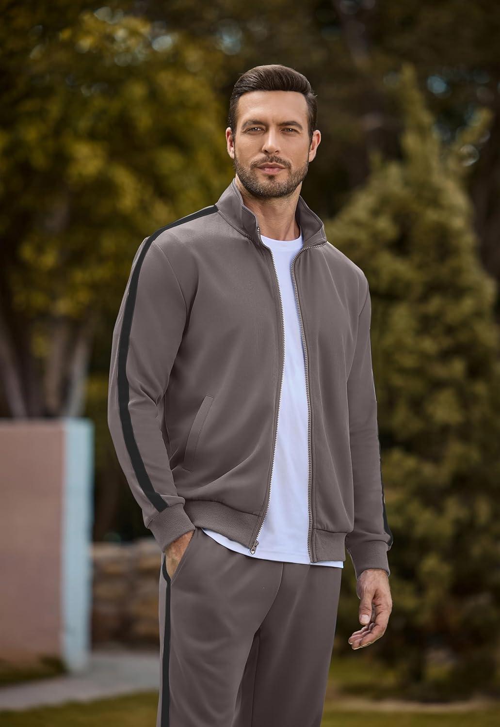 JMIERR Men’s Track Suits 2 Piece Full Zip Sports Outfits Set Sweatshirt and Joggers Sweatpants(Grey)