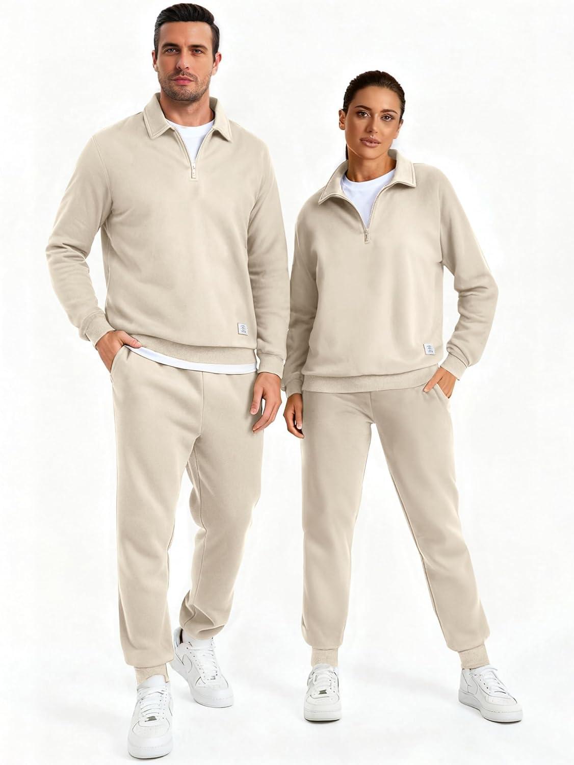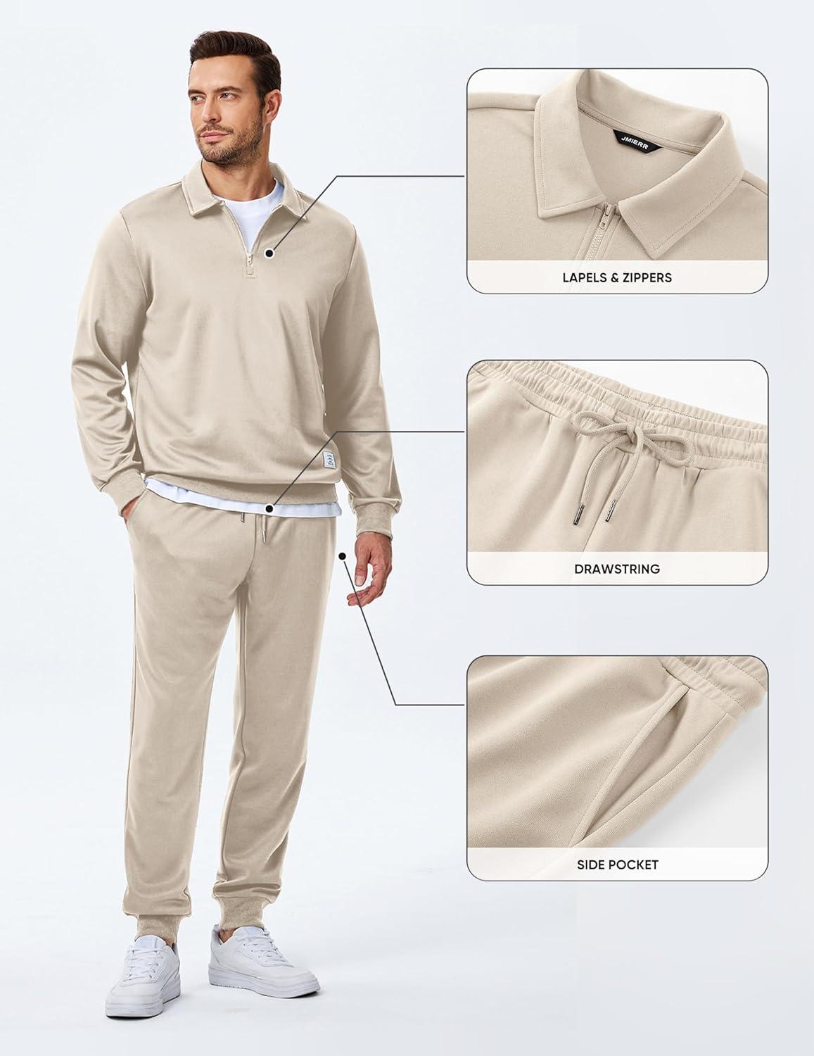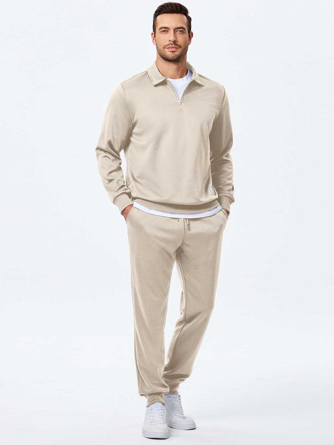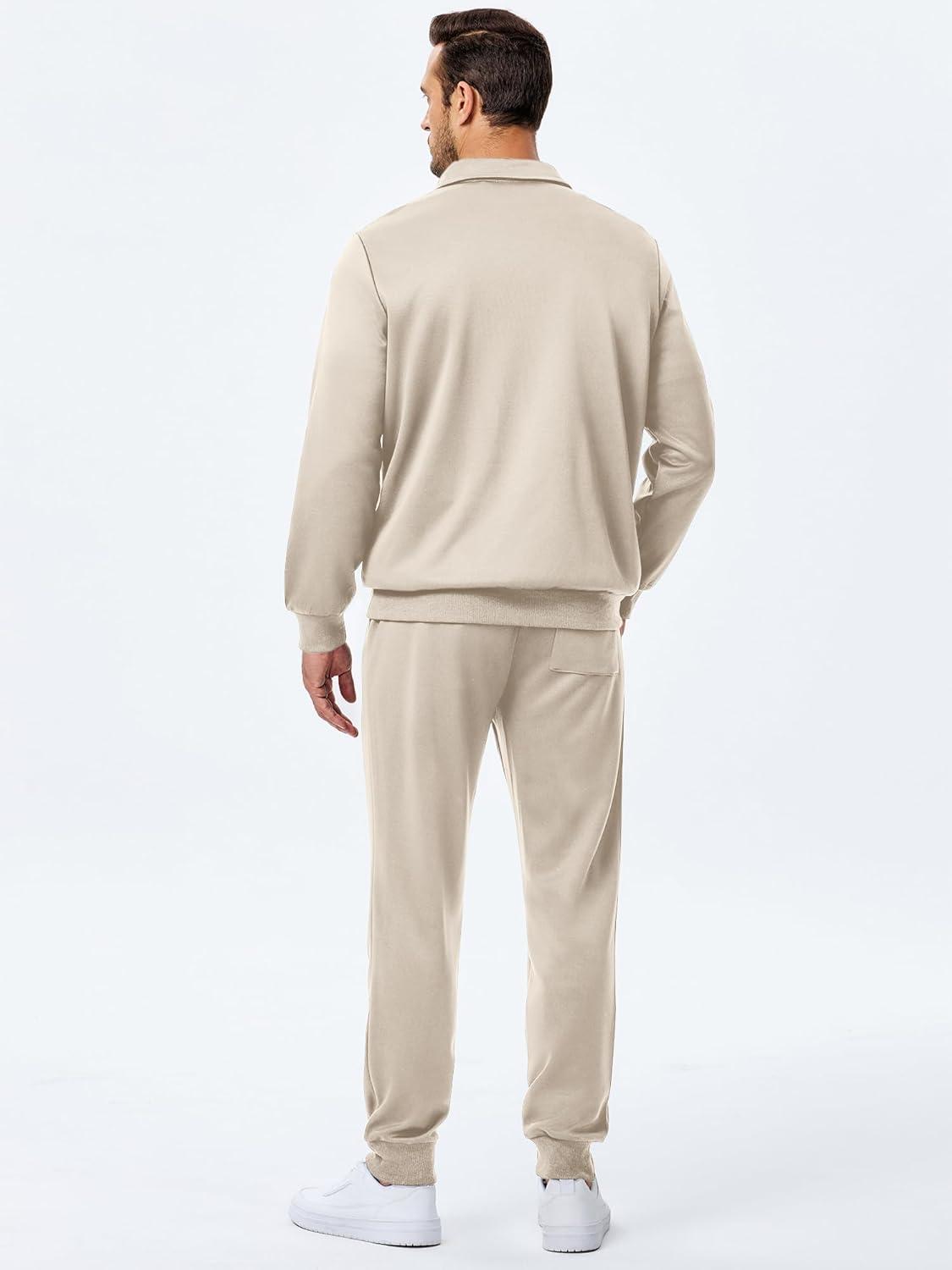 JMIERR Men’s Track Suits 2 Piece Outfits Quarter Zipper Polo Shirt Tracksuit & Joggers Sweatpants Sweatsuit Sets(Apricot)