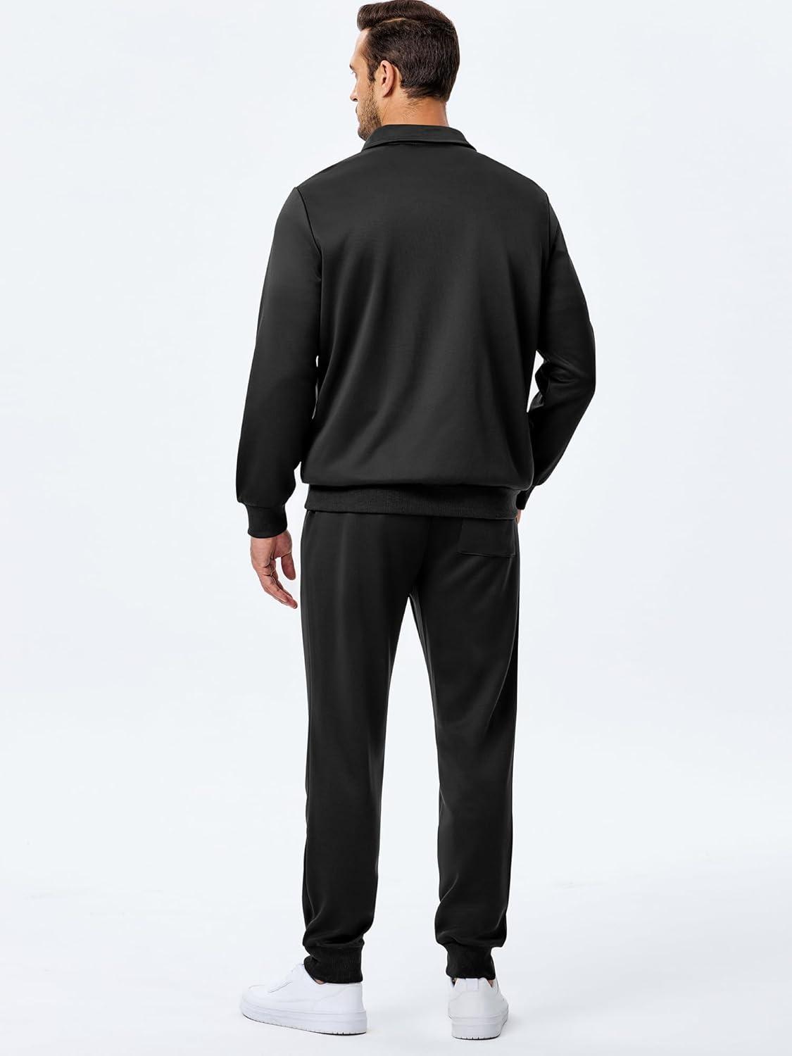 JMIERR Men’s Track Suits 2 Piece Outfits Quarter Zipper Polo Shirt Tracksuit & Joggers Sweatpants Sweatsuit Sets(Black)