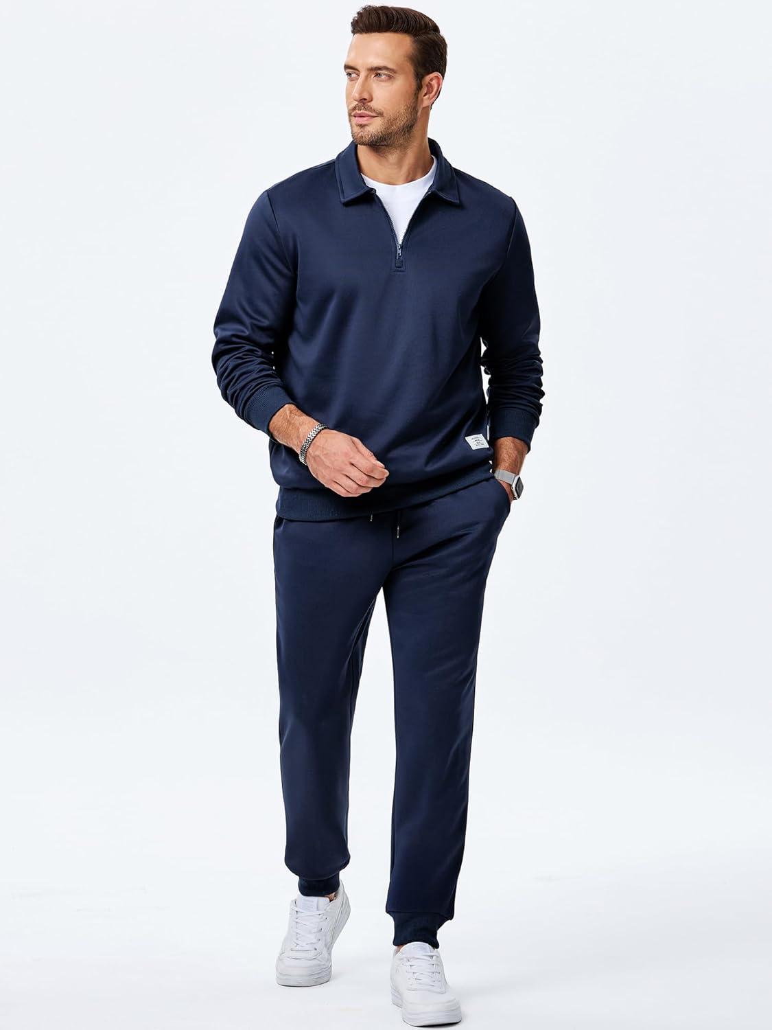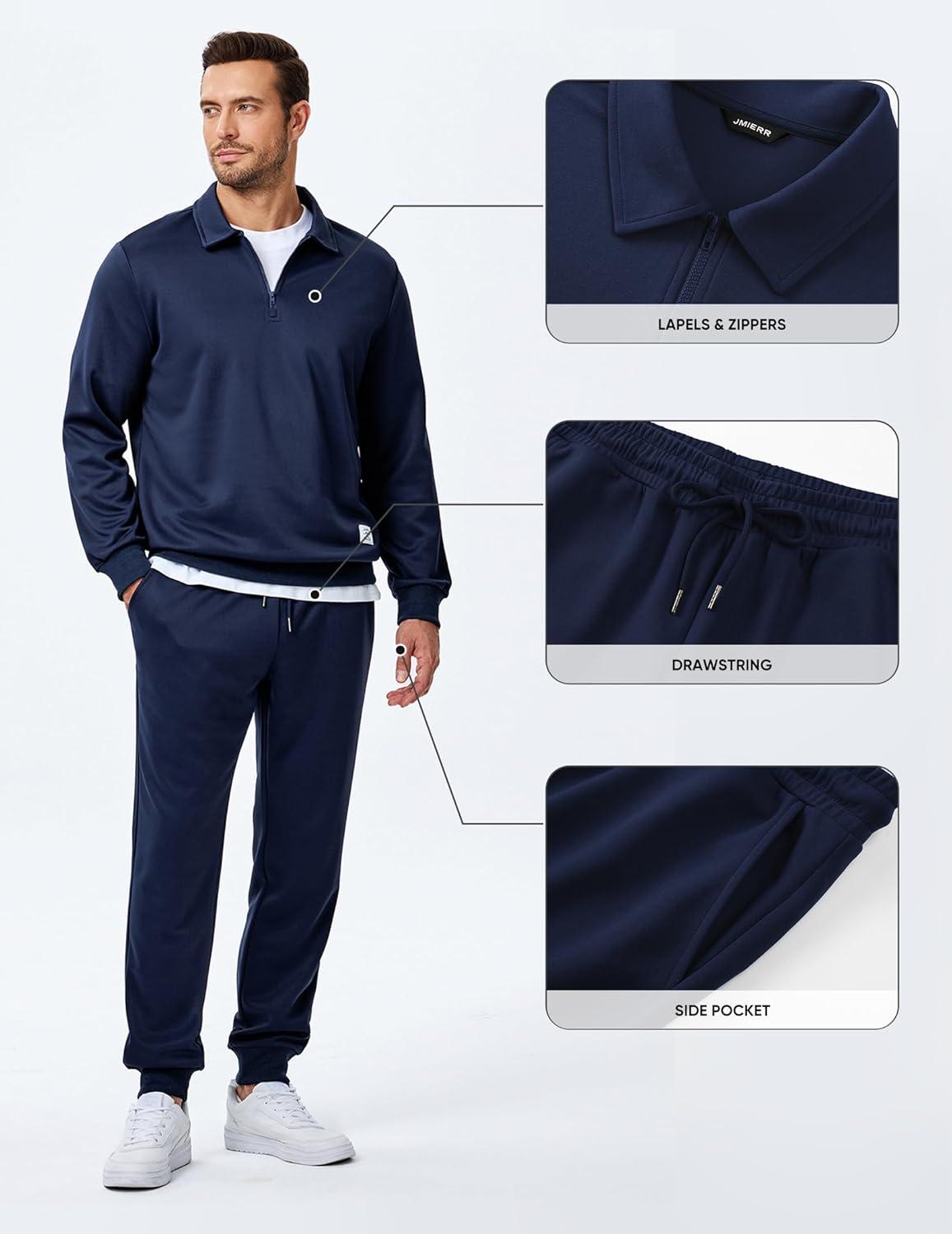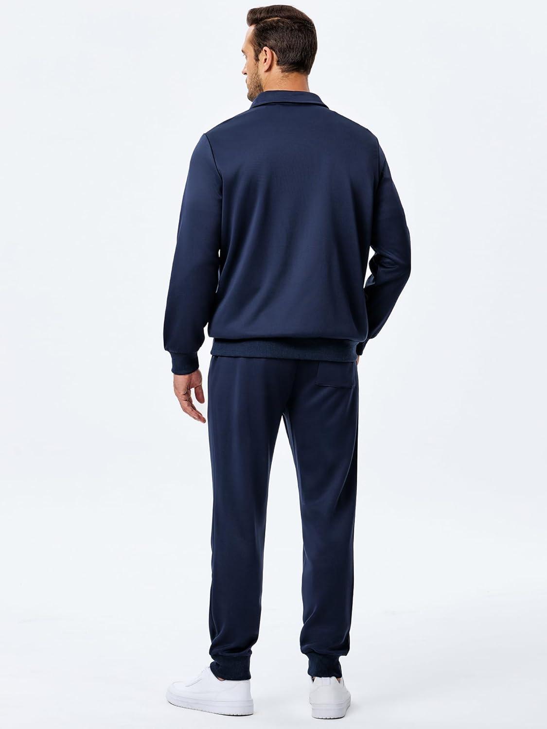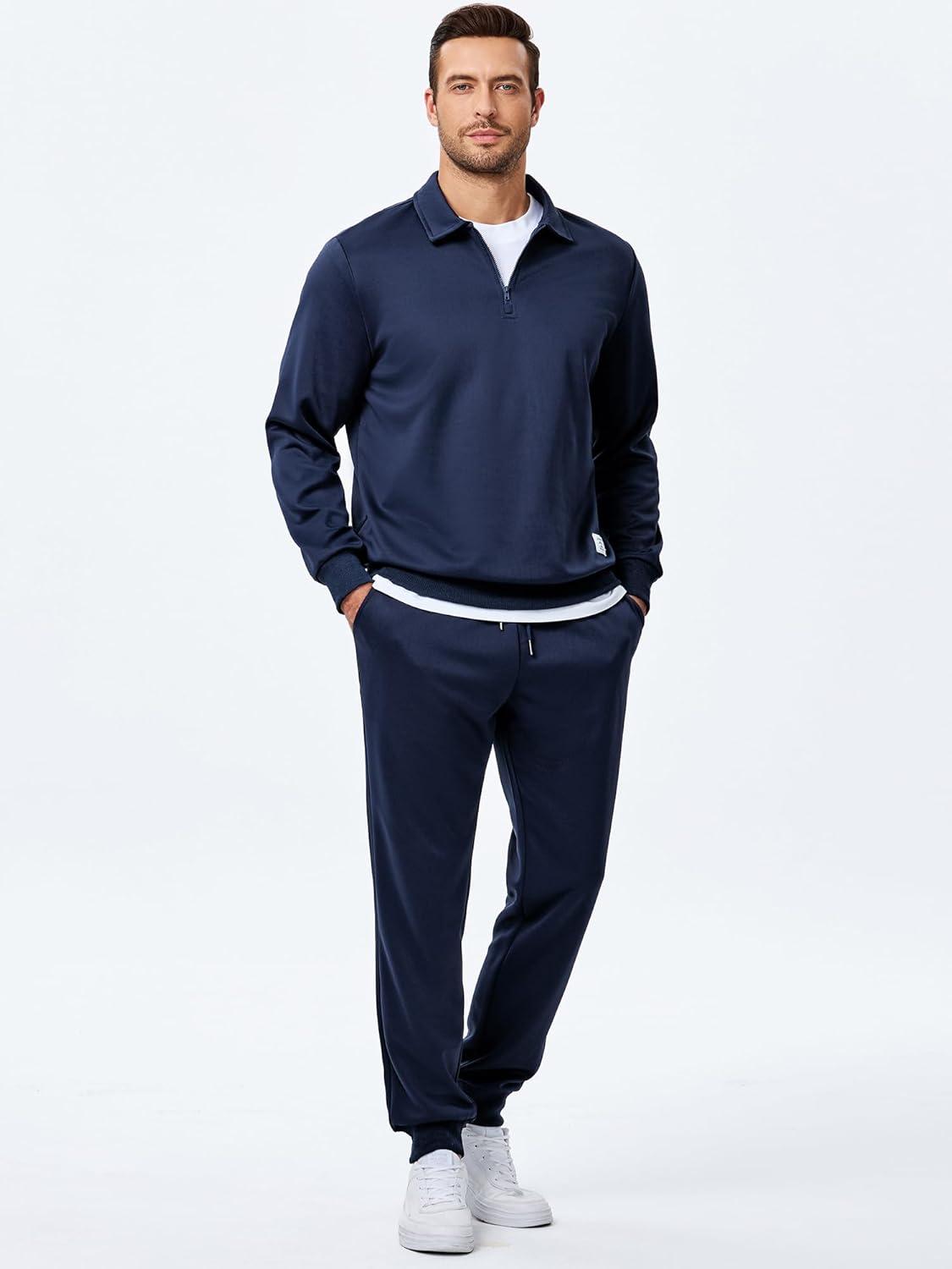 JMIERR Men’s Track Suits 2 Piece Outfits Quarter Zipper Polo Shirt Tracksuit & Joggers Sweatpants Sweatsuit Sets(Blue)