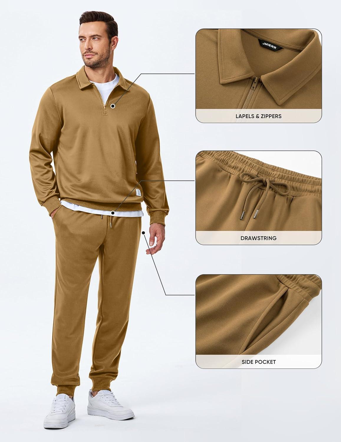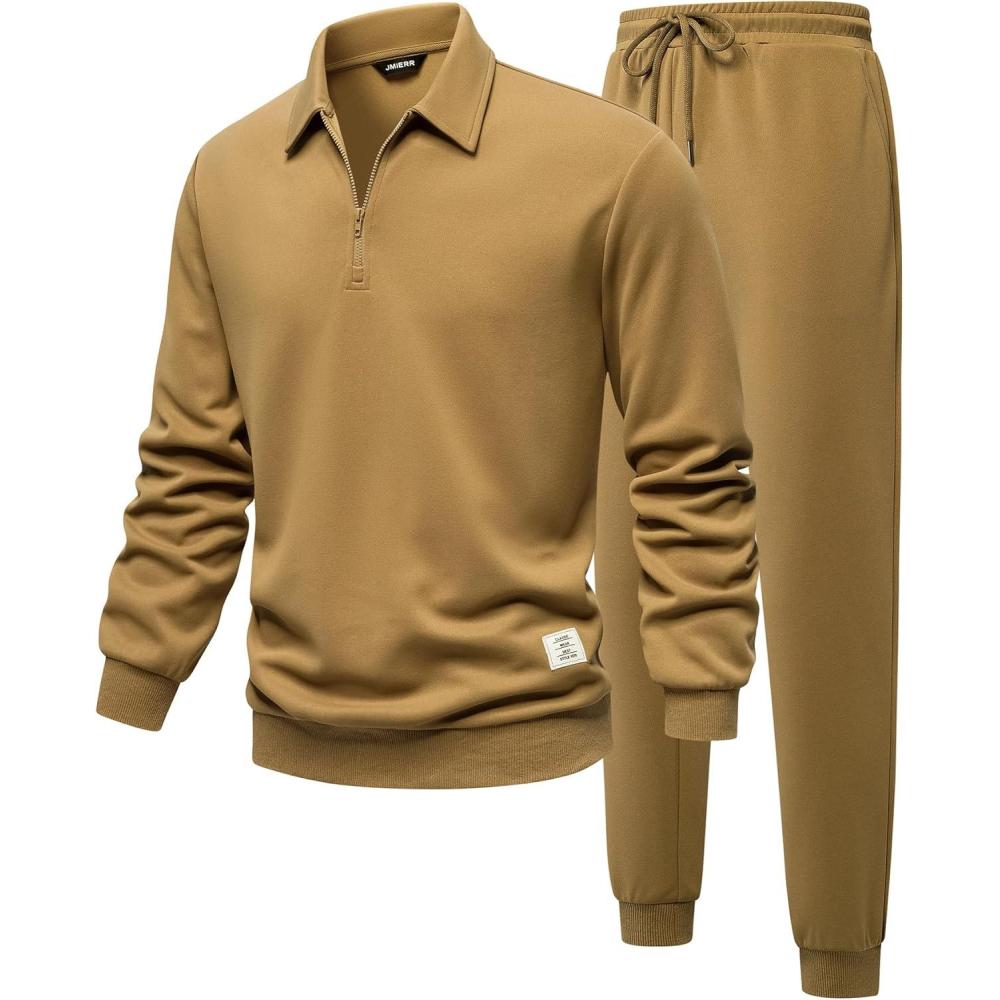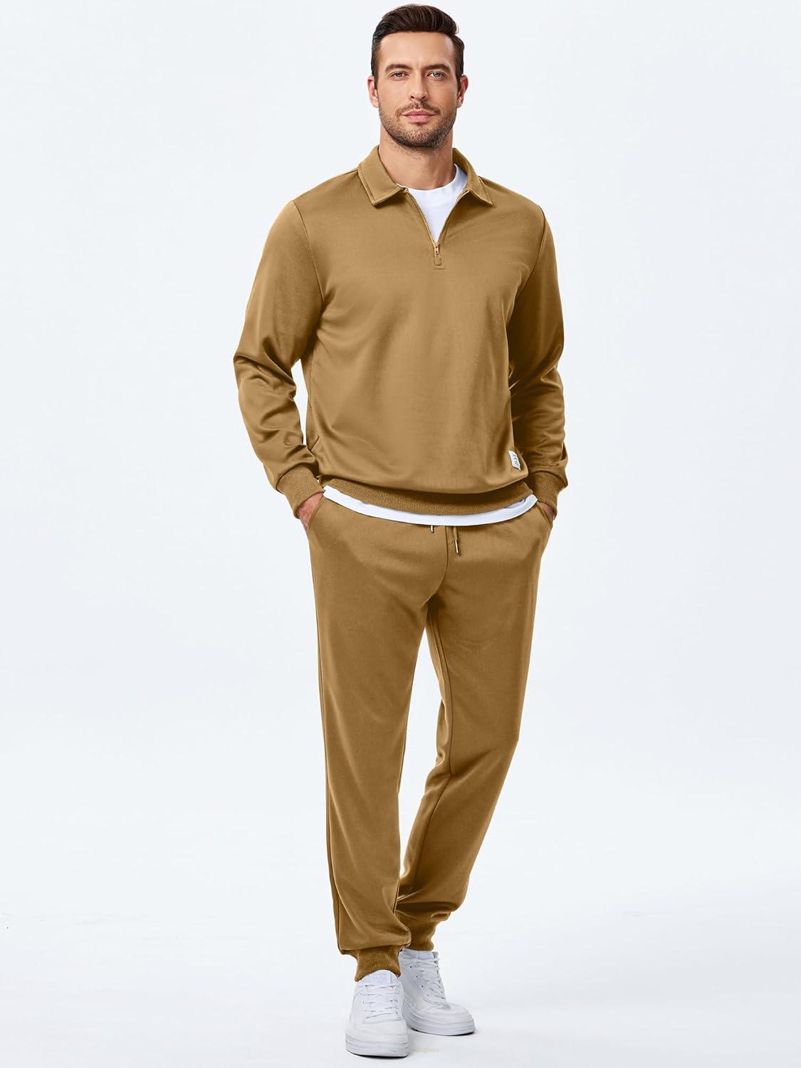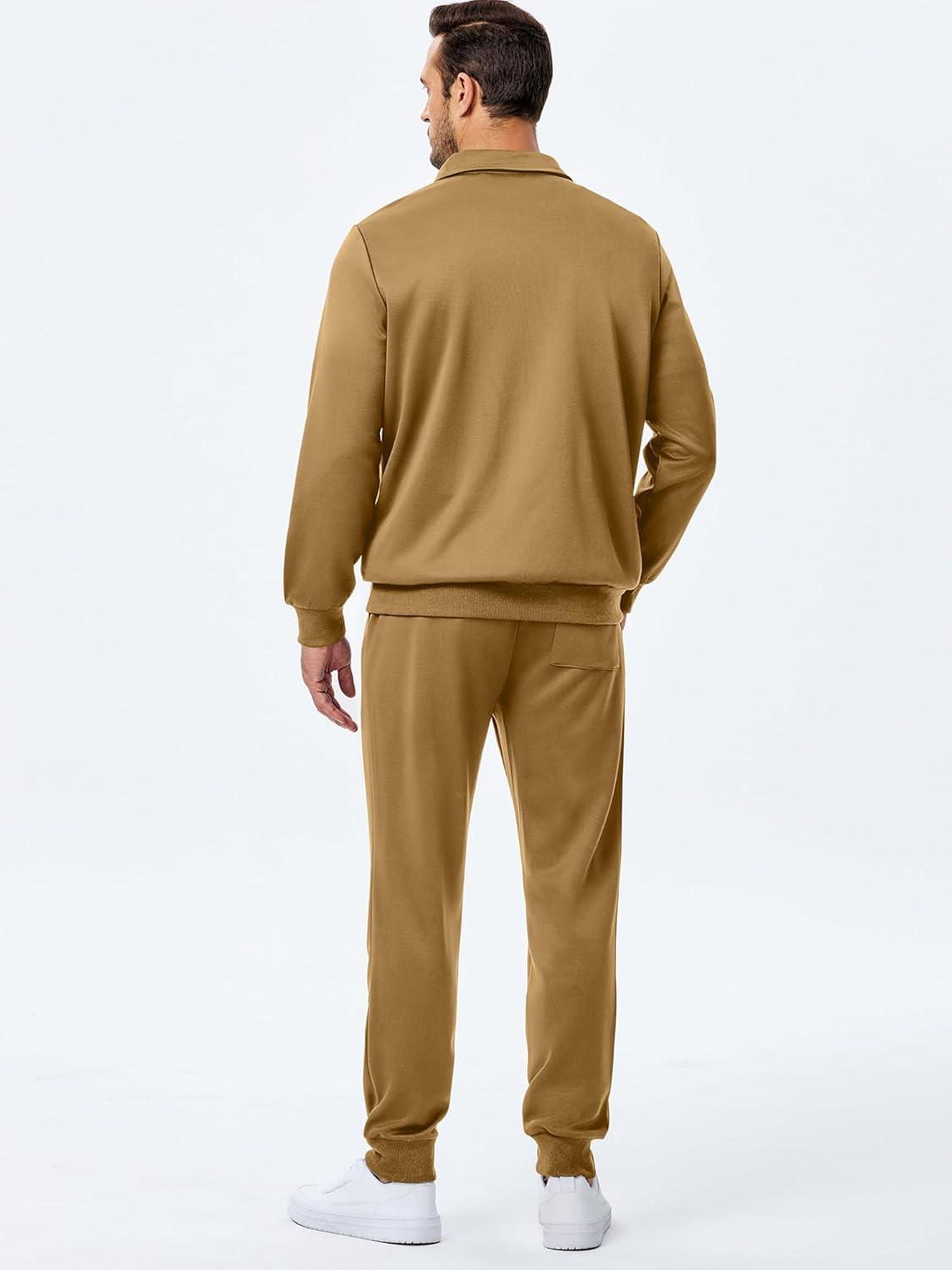 JMIERR Men’s Track Suits 2 Piece Outfits Quarter Zipper Polo Shirt Tracksuit & Joggers Sweatpants Sweatsuit Sets(Khaki)