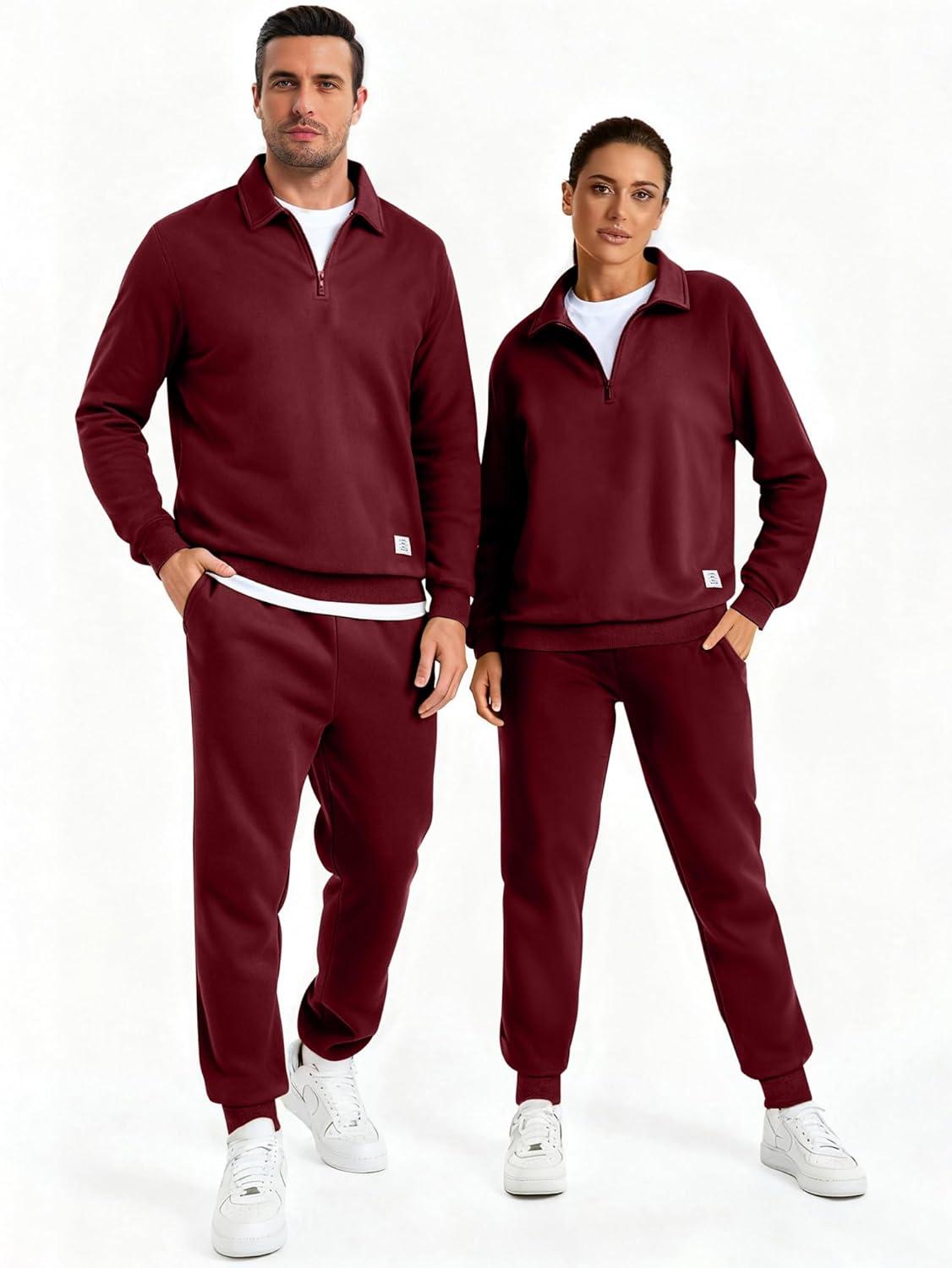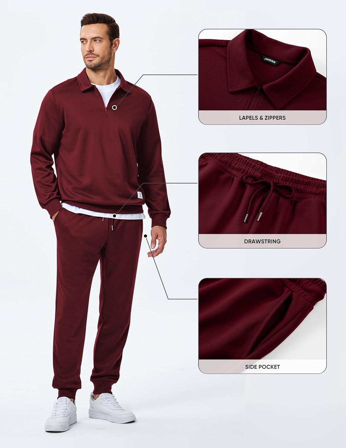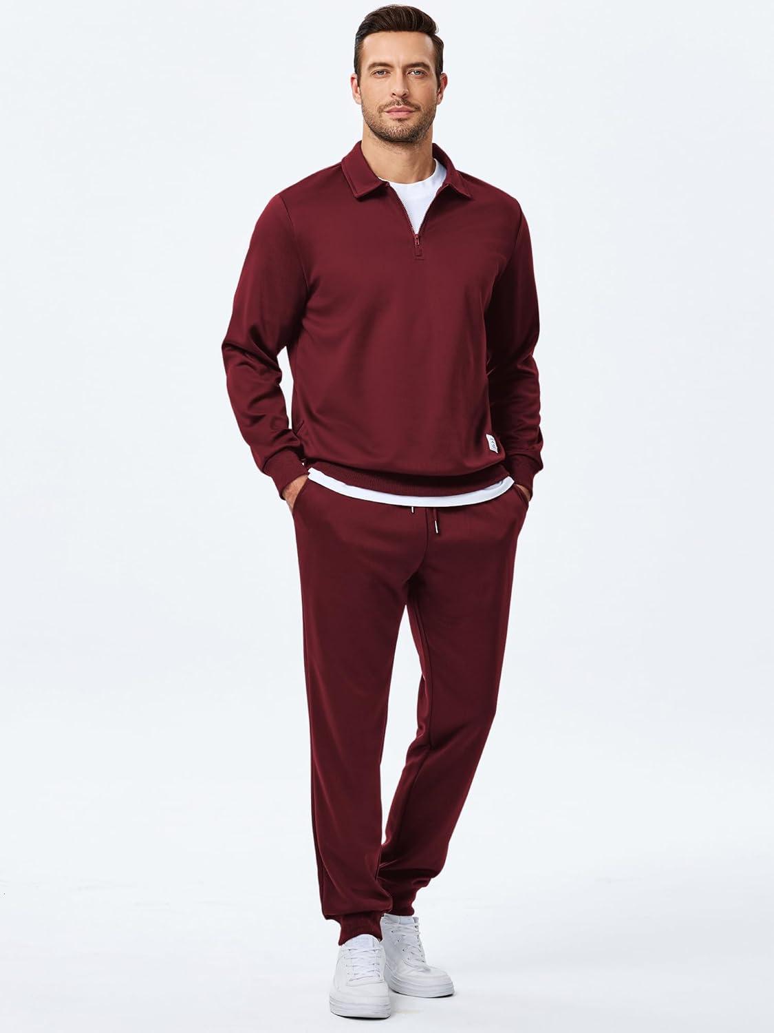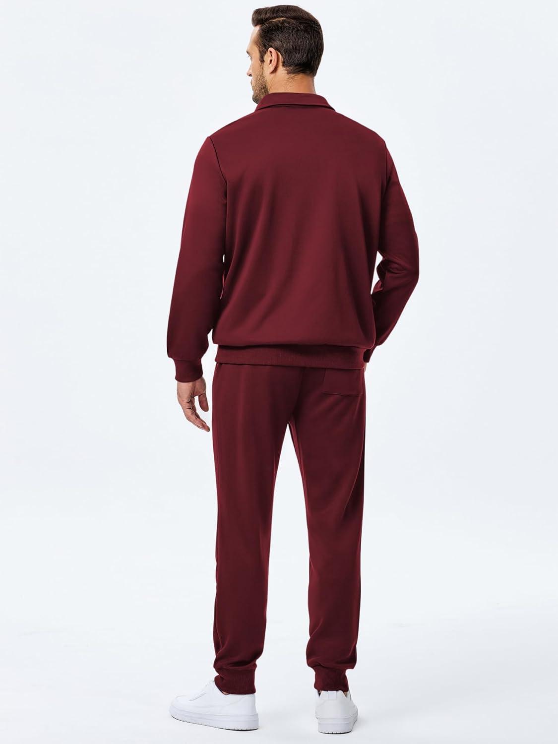 JMIERR Men’s Track Suits 2 Piece Outfits Quarter Zipper Polo Shirt Tracksuit & Joggers Sweatpants Sweatsuit Sets(Red)