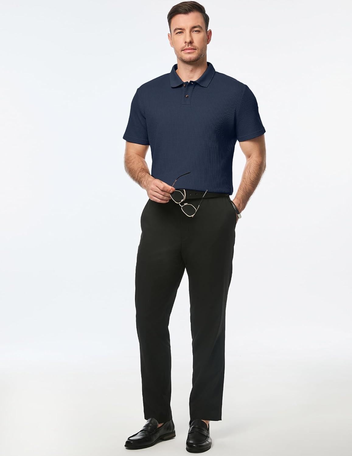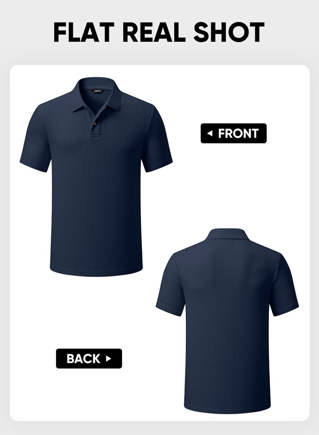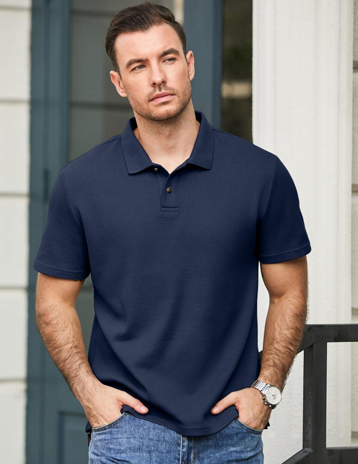 JMIERR Men’s Waffle Polo Shirts Summer Casual Short Sleeve T-Shirt Button Up Solid Color Henley Shirts(Navy Blue)