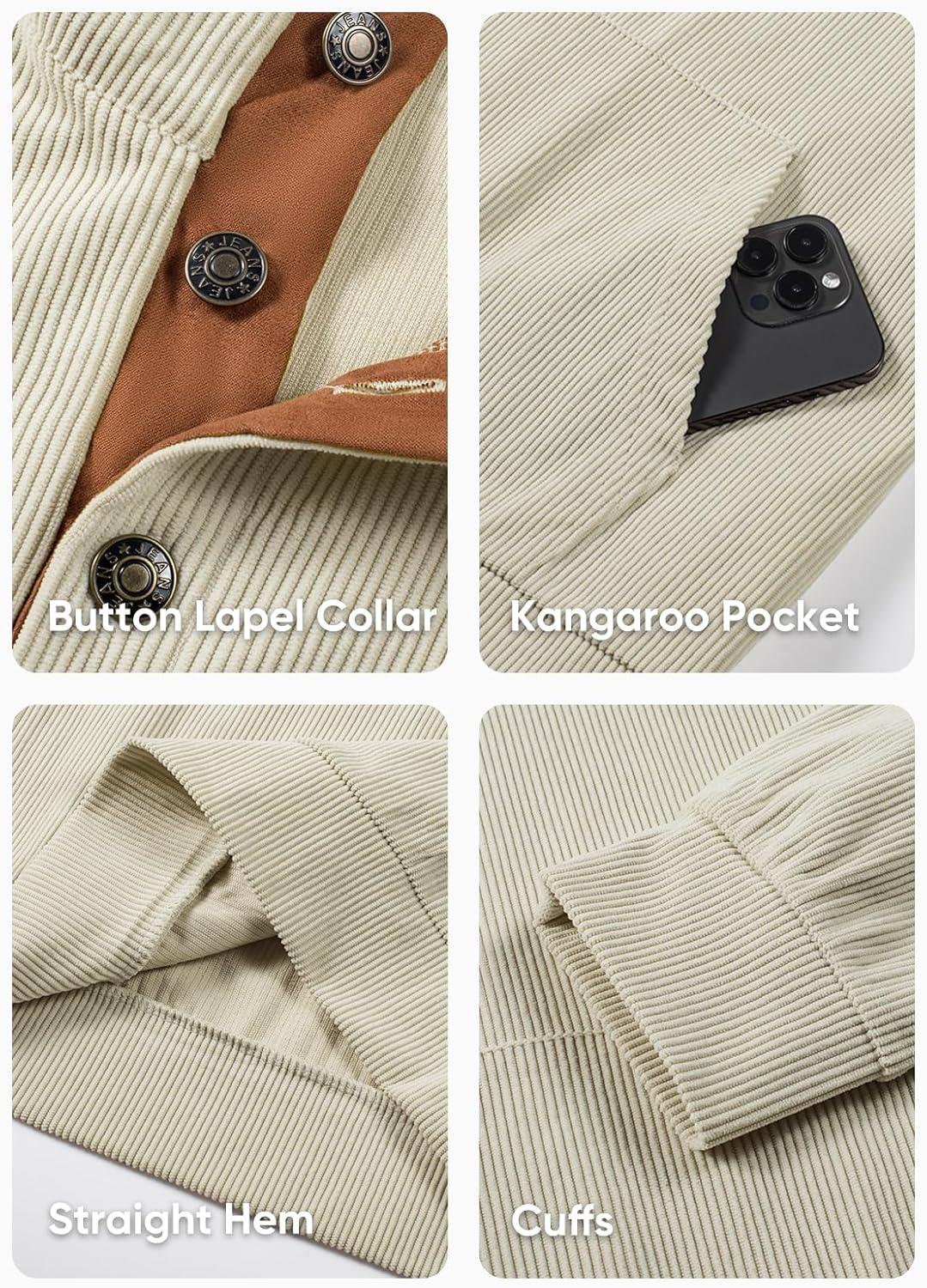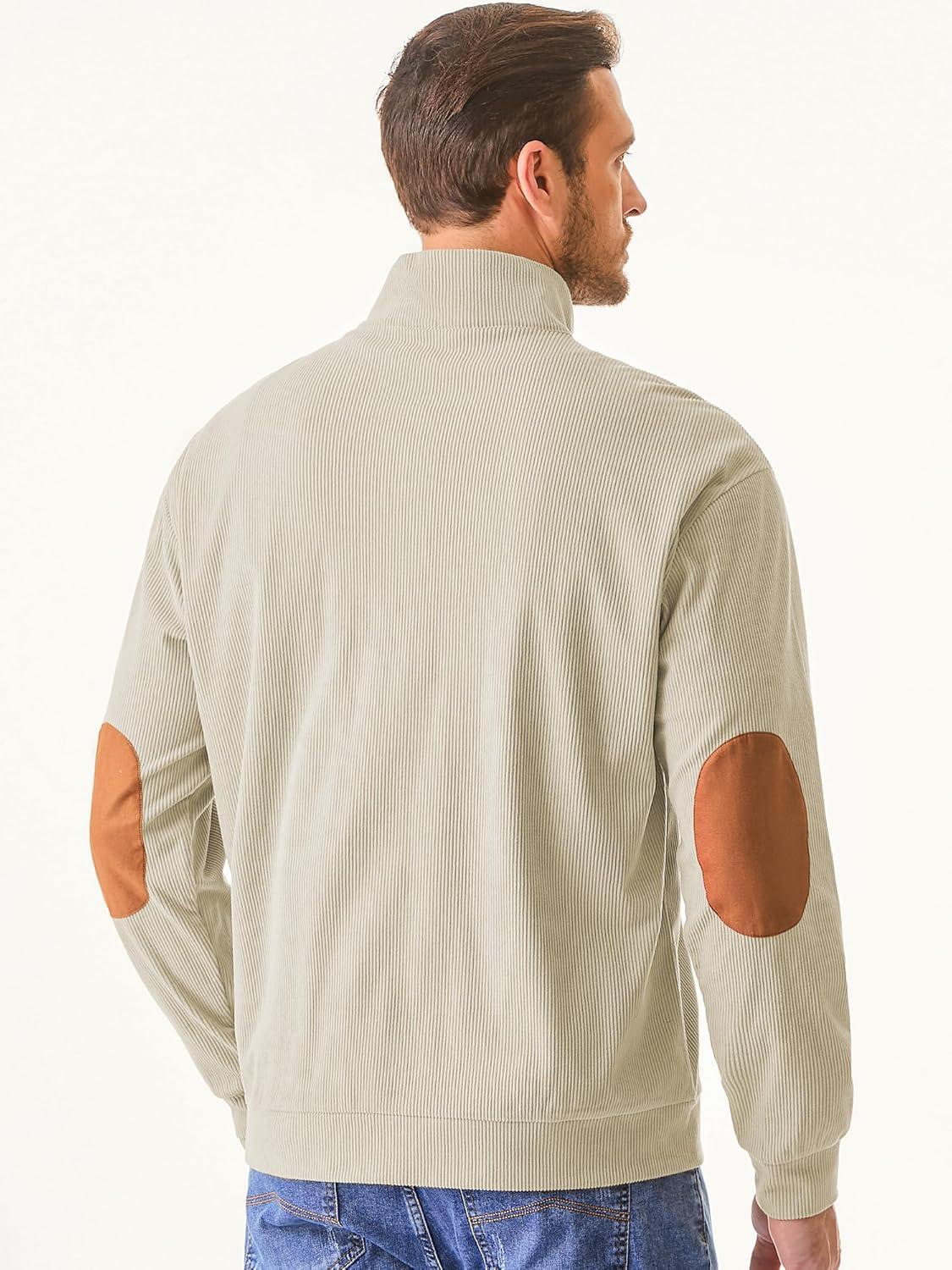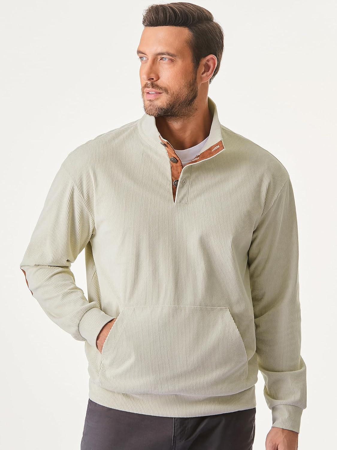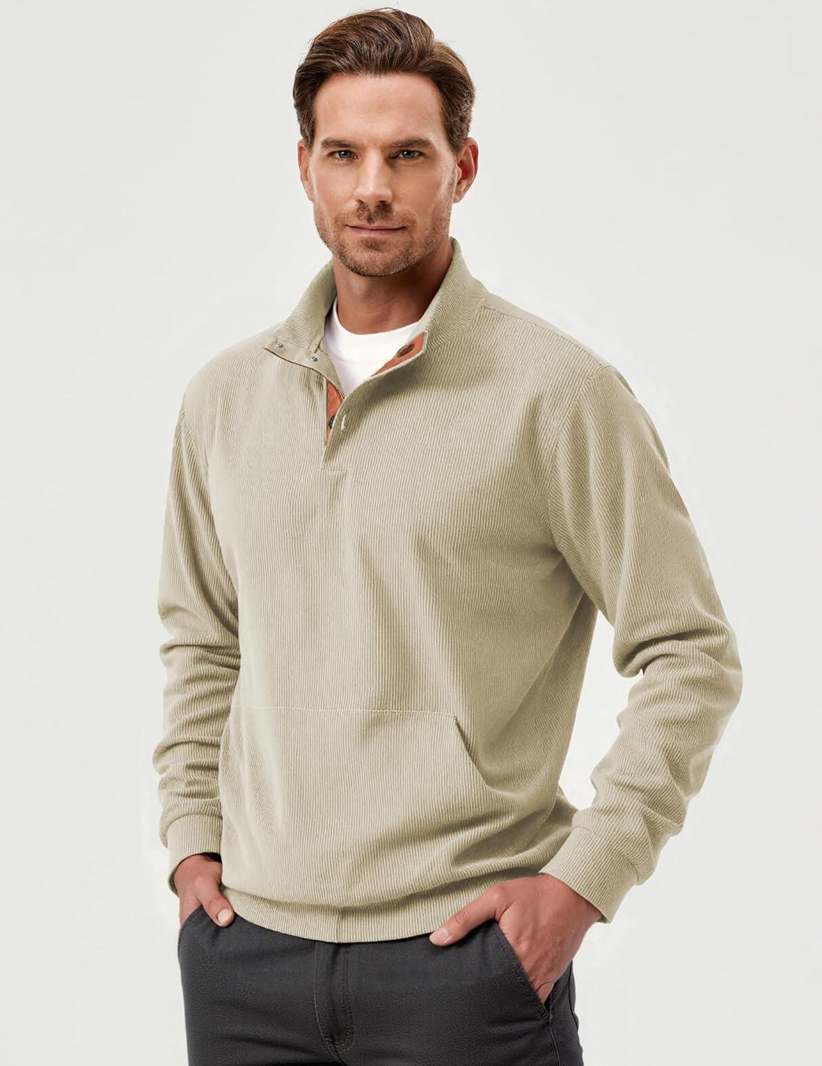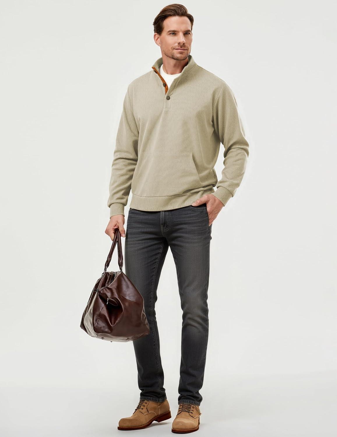 JMIERR Mens Warm Corduroy Sweatshirt Casual Stand Collar Quarter Fall Metal Button Pullover Sweaters Long Sleeve with Pockets(C Beige)