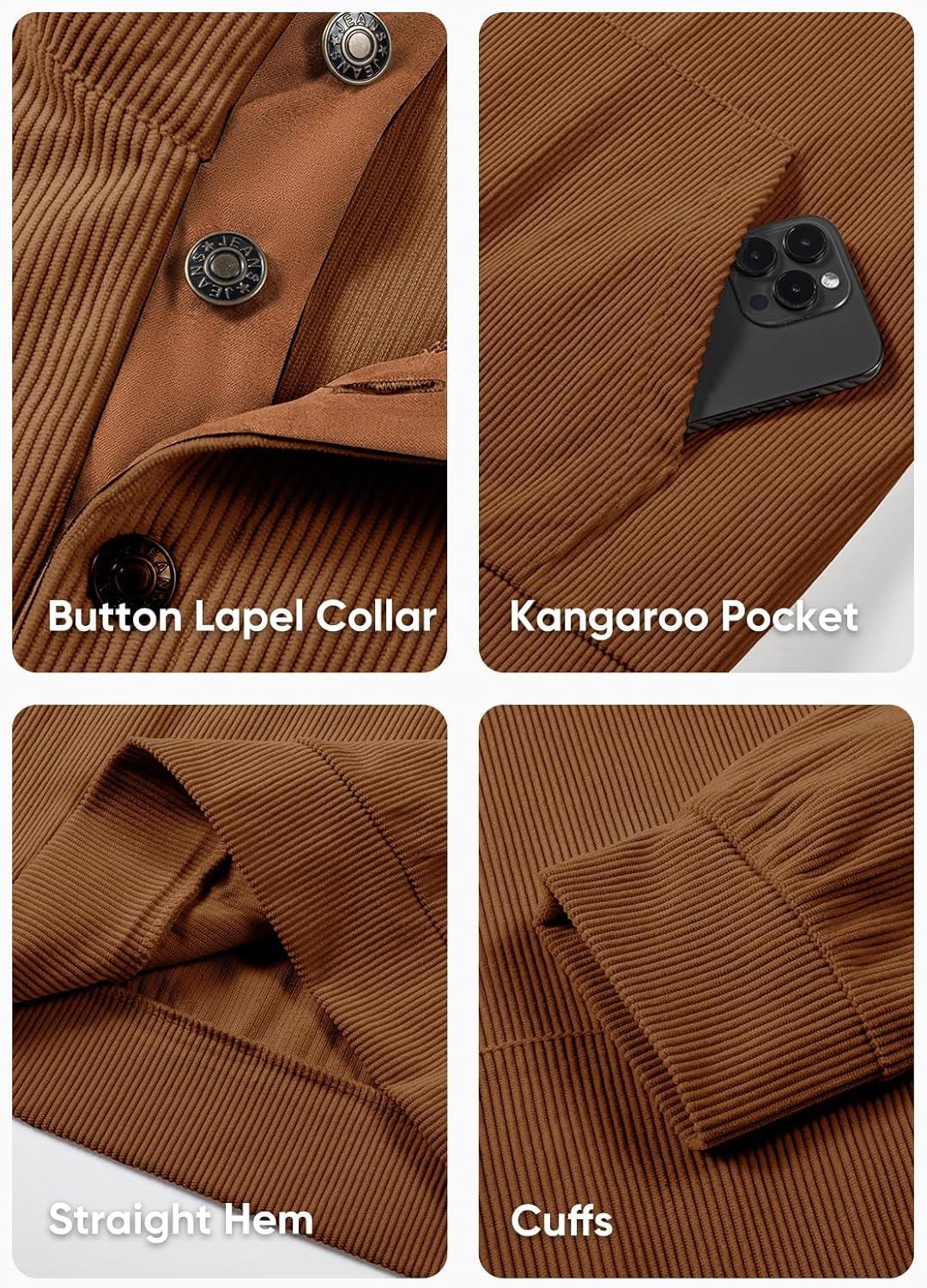 Be the first to review “JMIERR Mens Warm Corduroy Sweatshirt Casual Stand Collar Quarter Fall Metal Button Pullover Sweaters Long Sleeve with Pockets(F Chestnut Brown)”