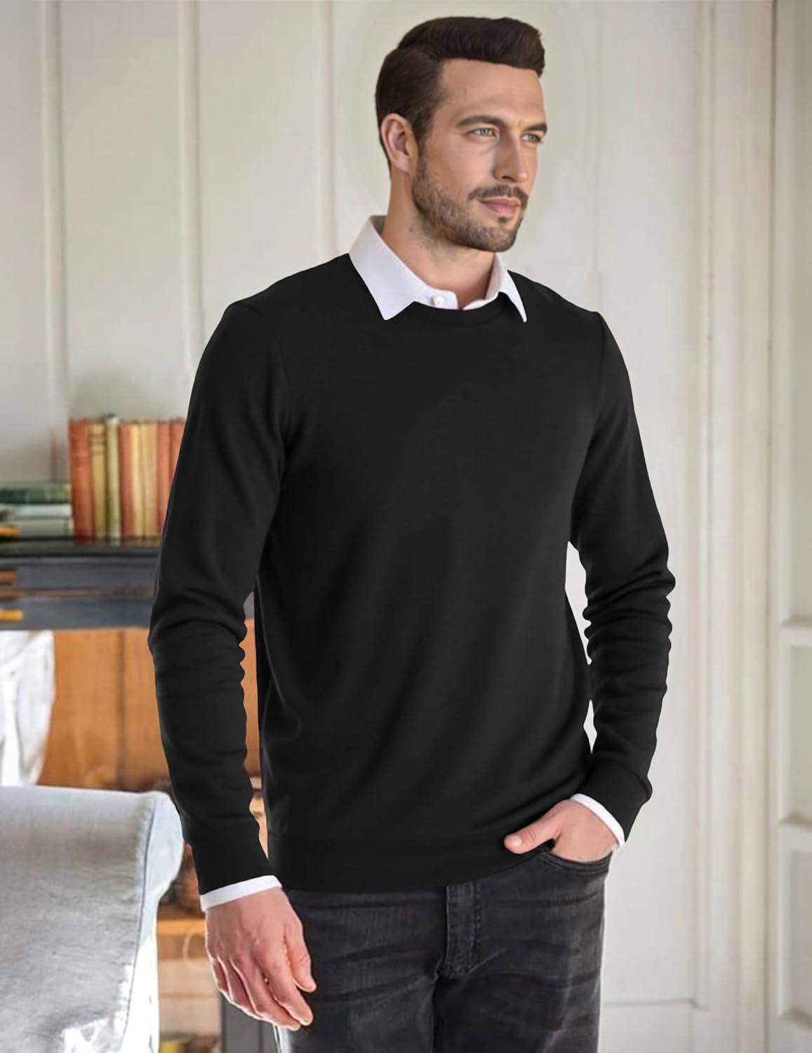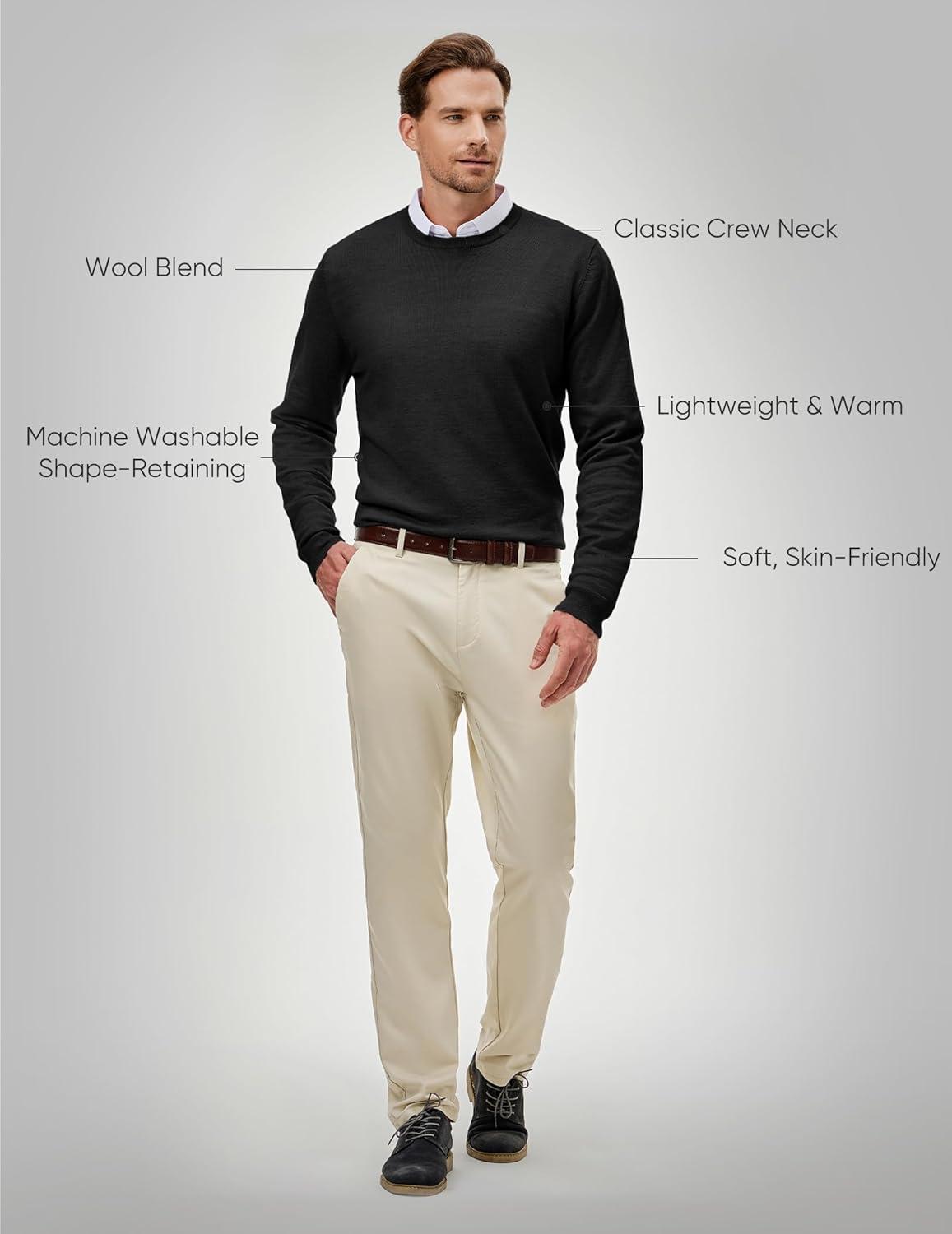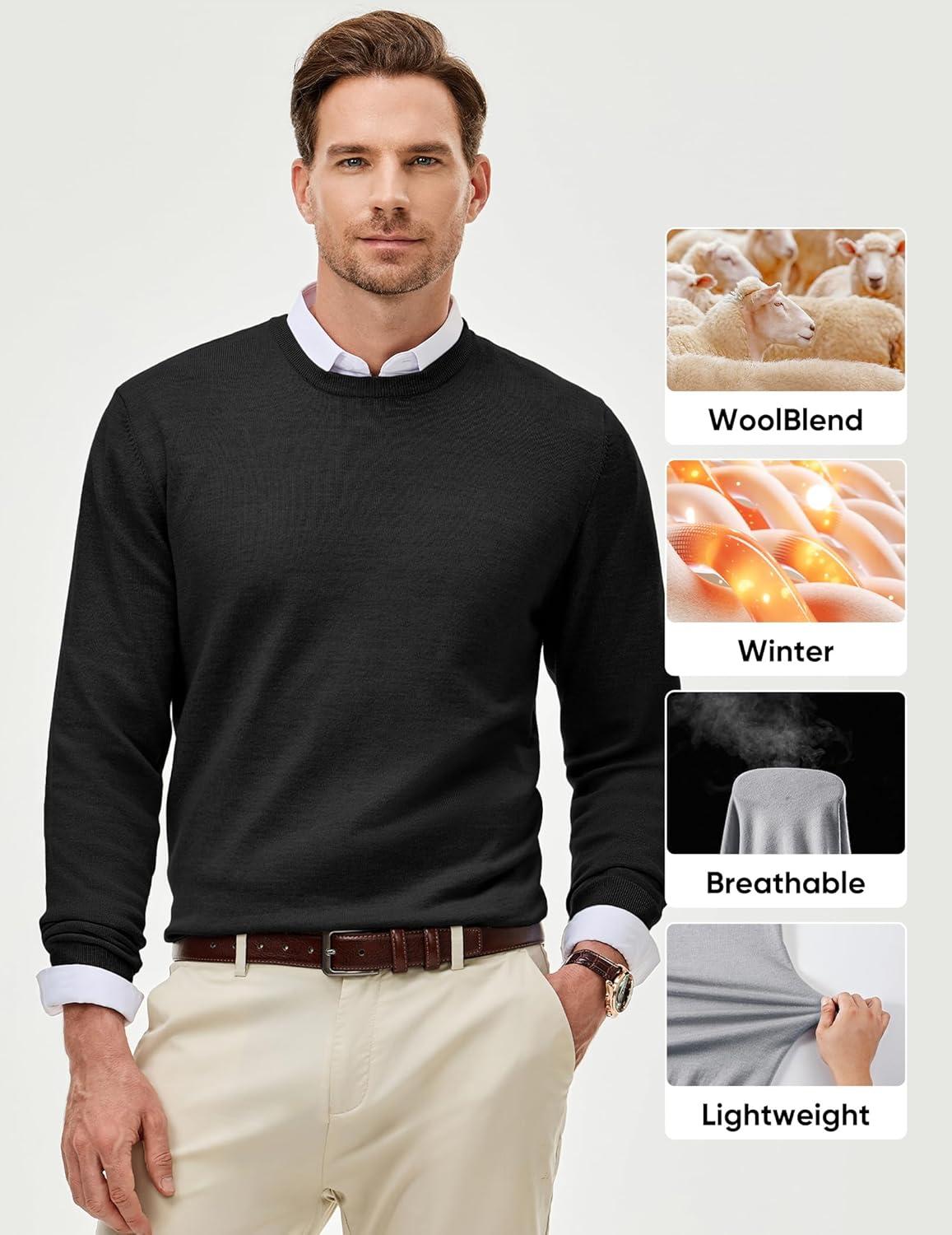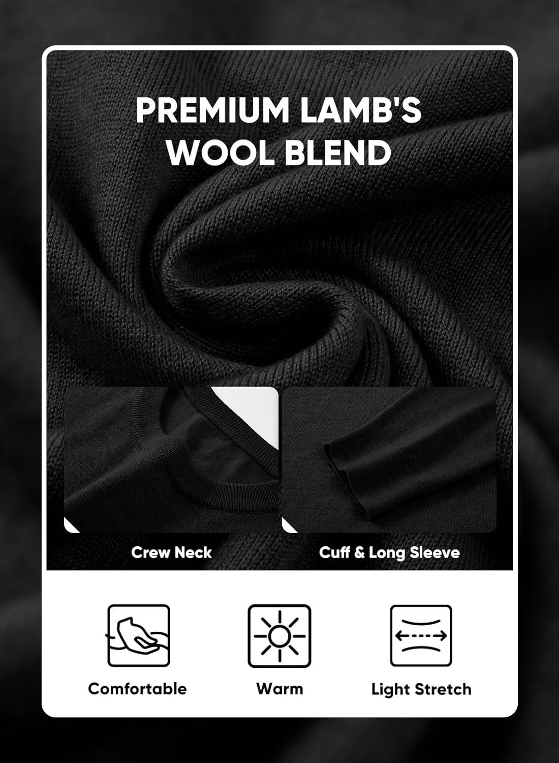 JMIERR Men’s Wool Blend Classic Crew Neck Casual Fall Sweaters(Black)