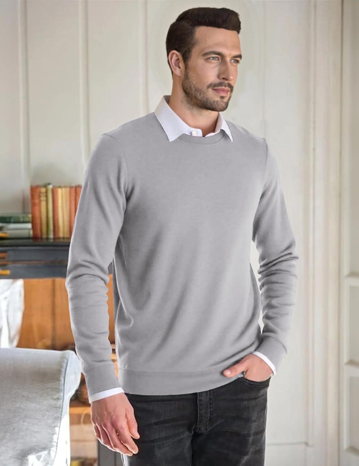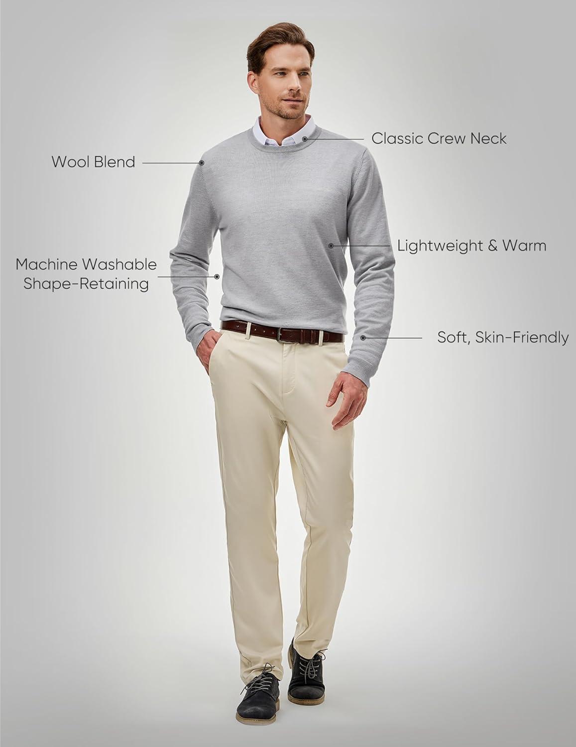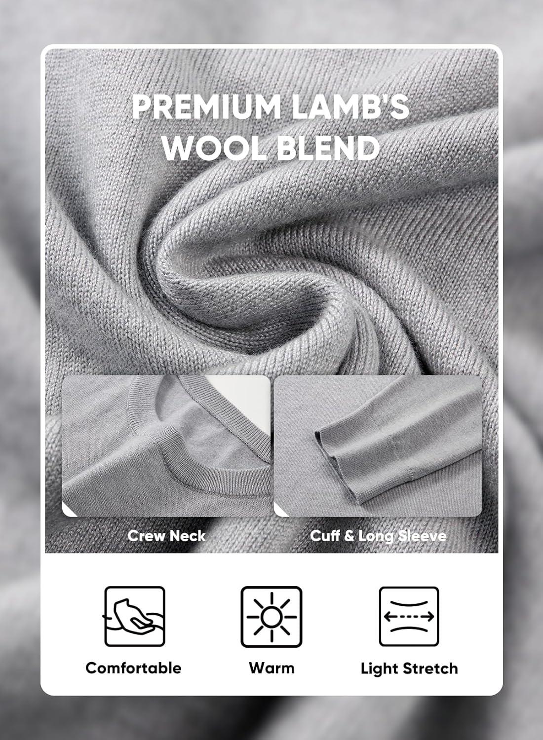 JMIERR Men’s Wool Blend Classic Crew Neck Casual Fall Sweaters(Light Grey)